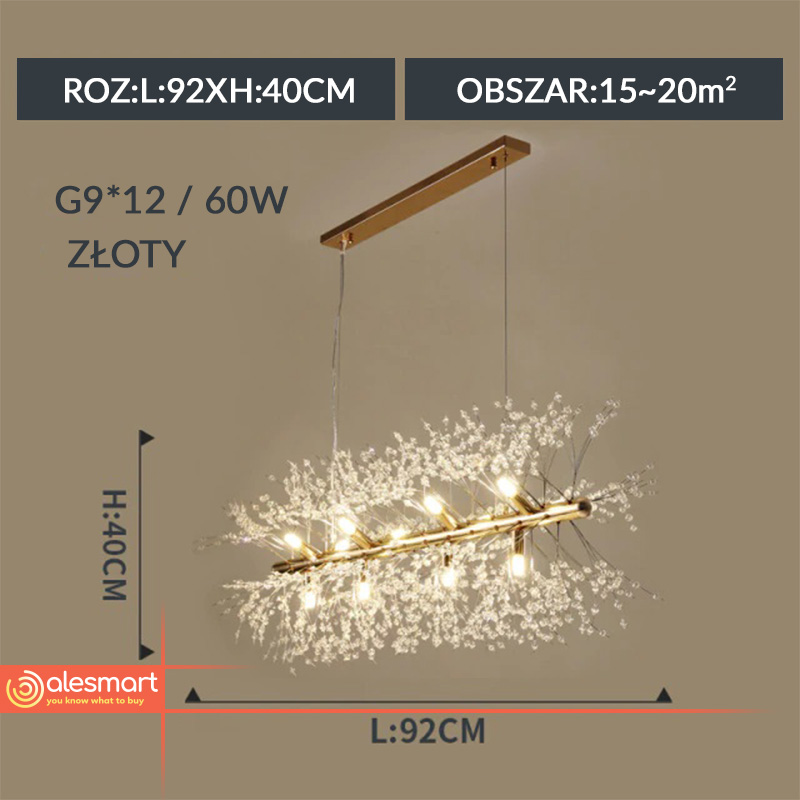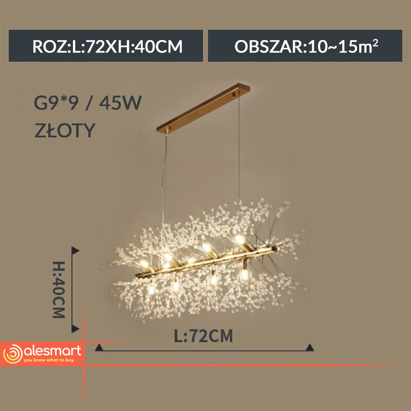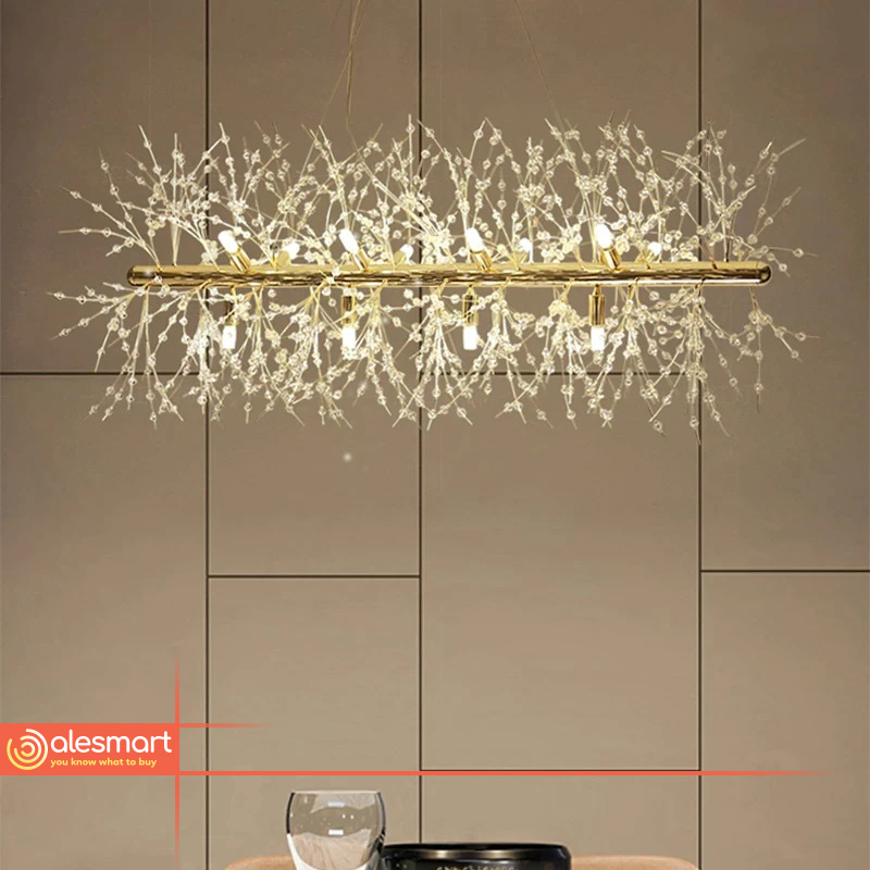 Kryształowa podłużna lampa wisząca dmuchawiec. Ozdoba do restauracji, salonu fryzjerskiego, hotelu, sypialni, salonu.