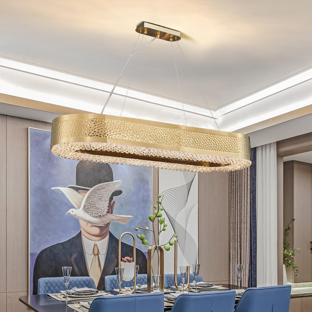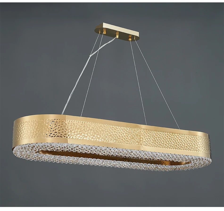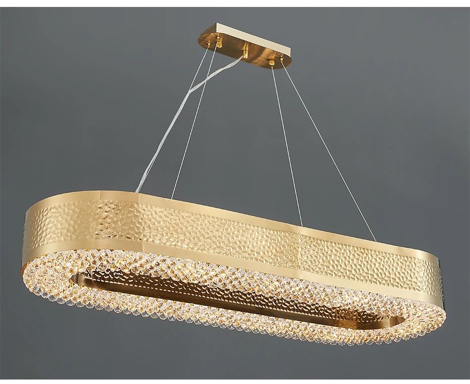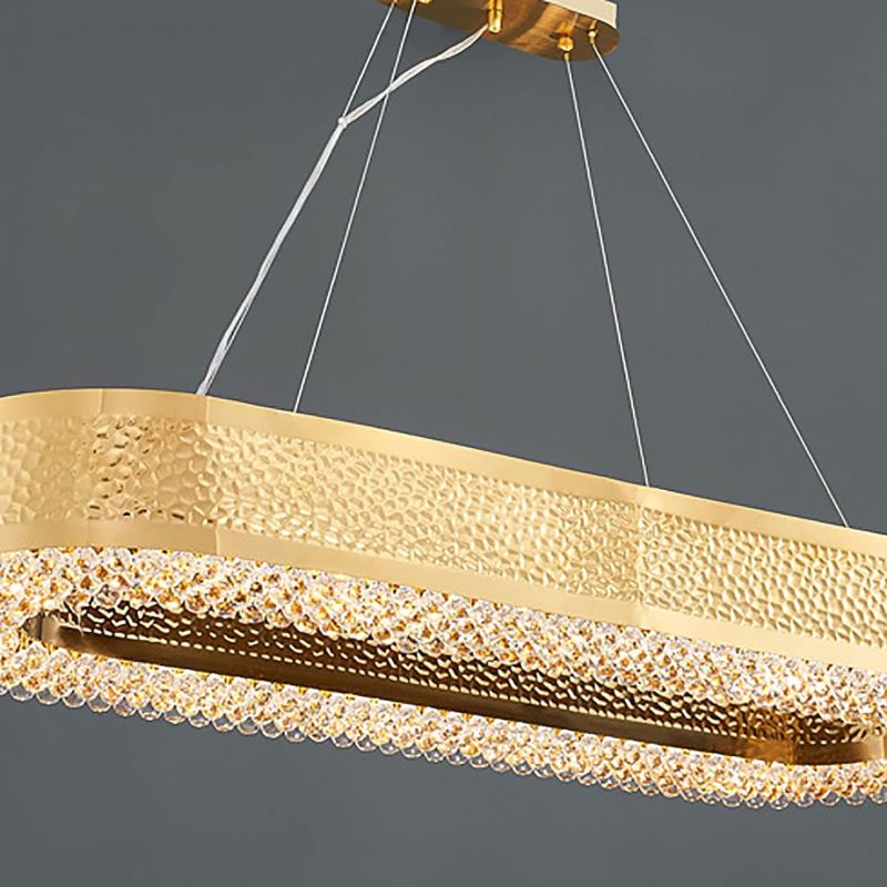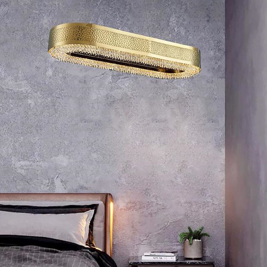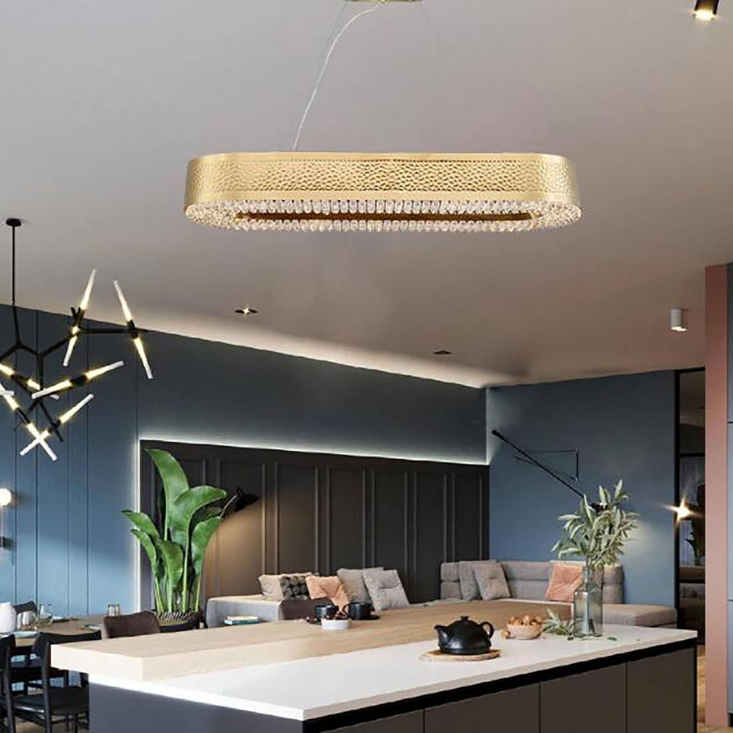 Nowoczesna Ekskluzywna Kryształowa Lampa Wisząca Maeve Żyrandol Glamour w Kolorze Złotym. Lampa podłużna nad stół.