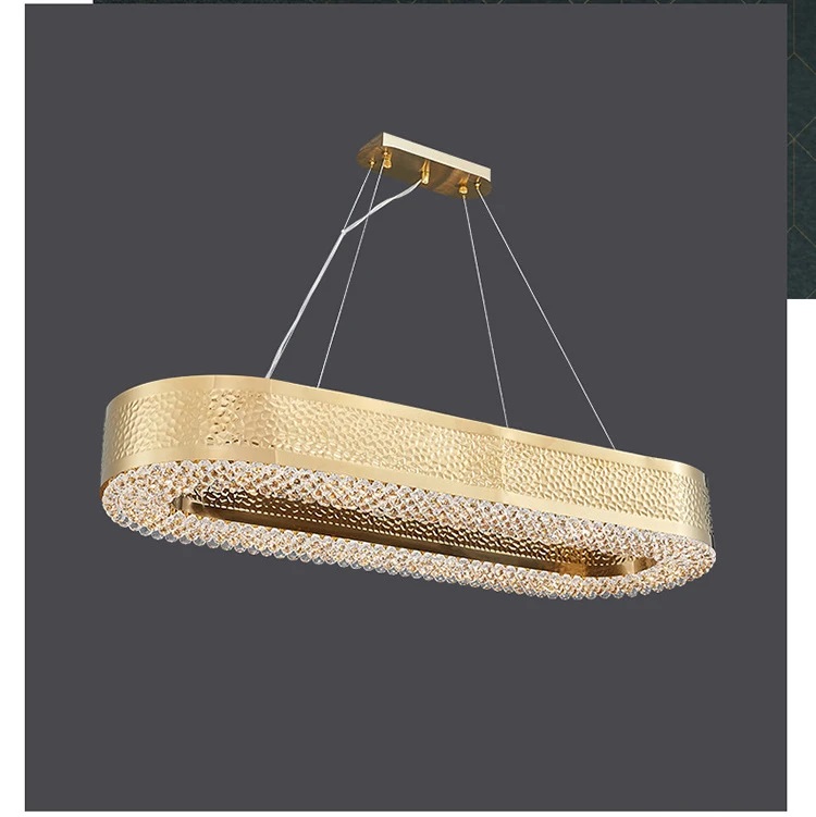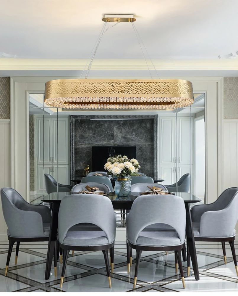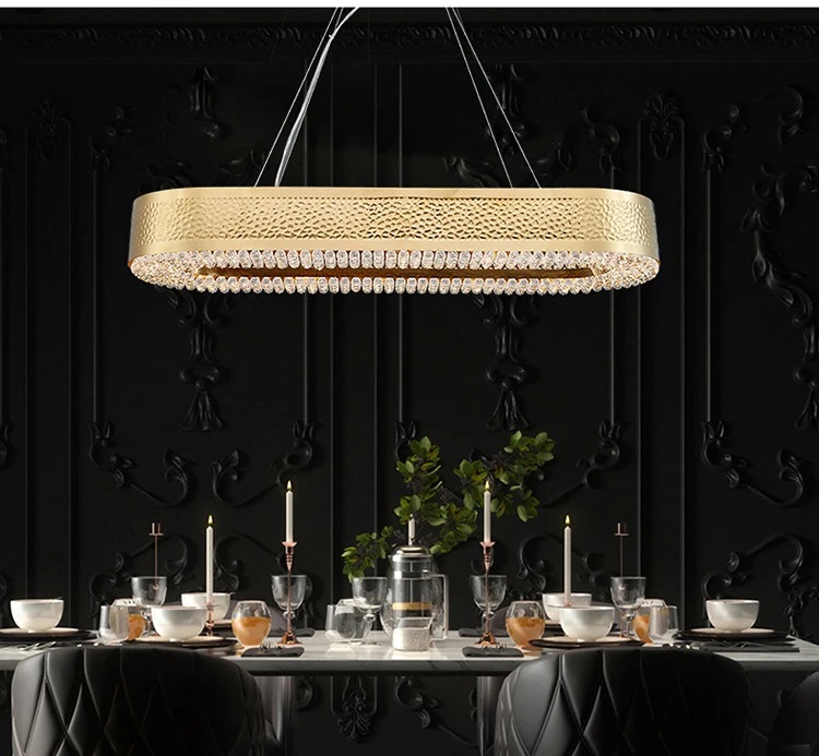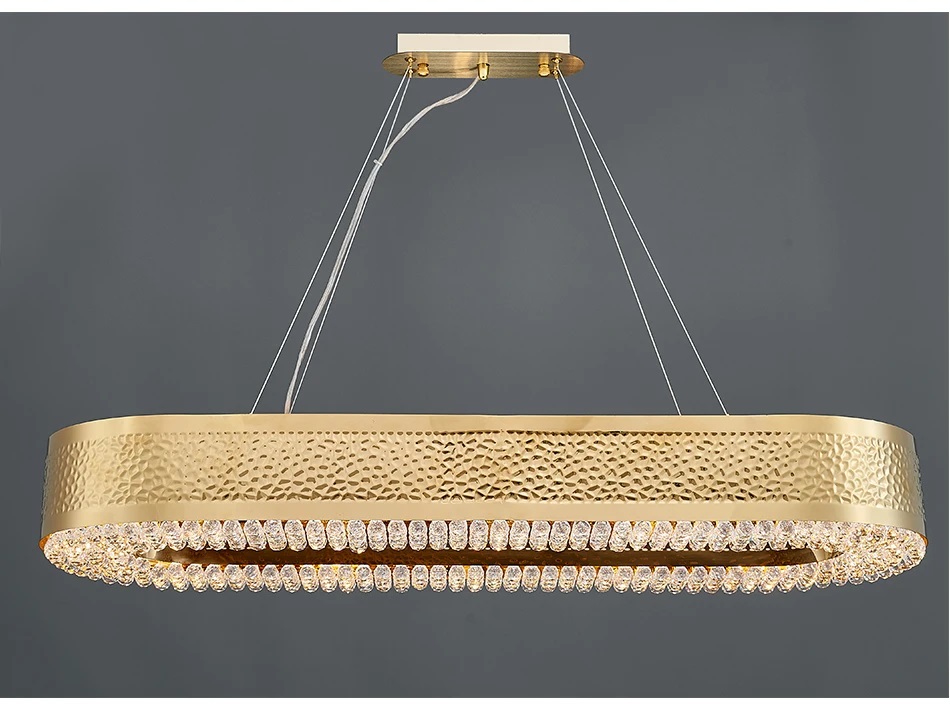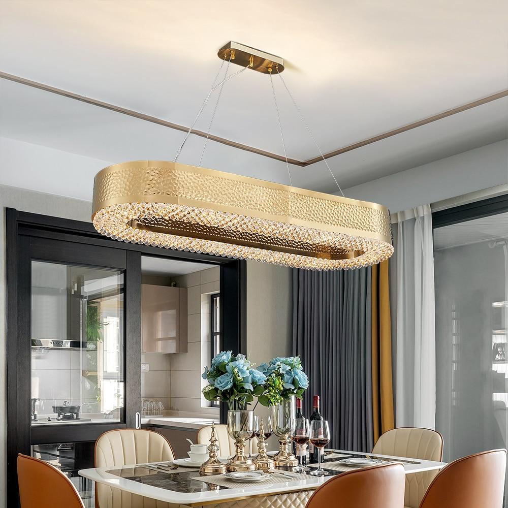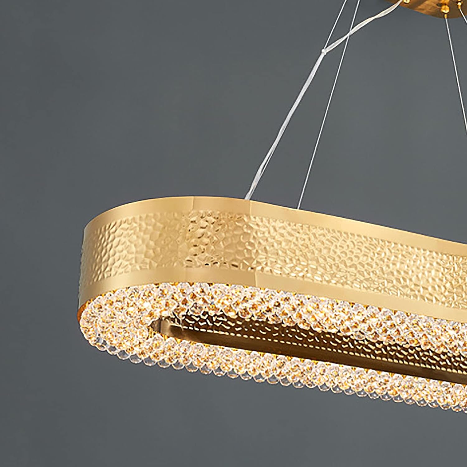 Nowoczesna Ekskluzywna Kryształowa Lampa Wisząca Maeve Żyrandol Glamour w Kolorze Złotym. Lampa podłużna nad stół.
