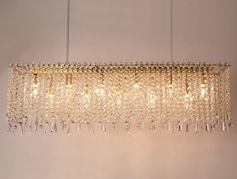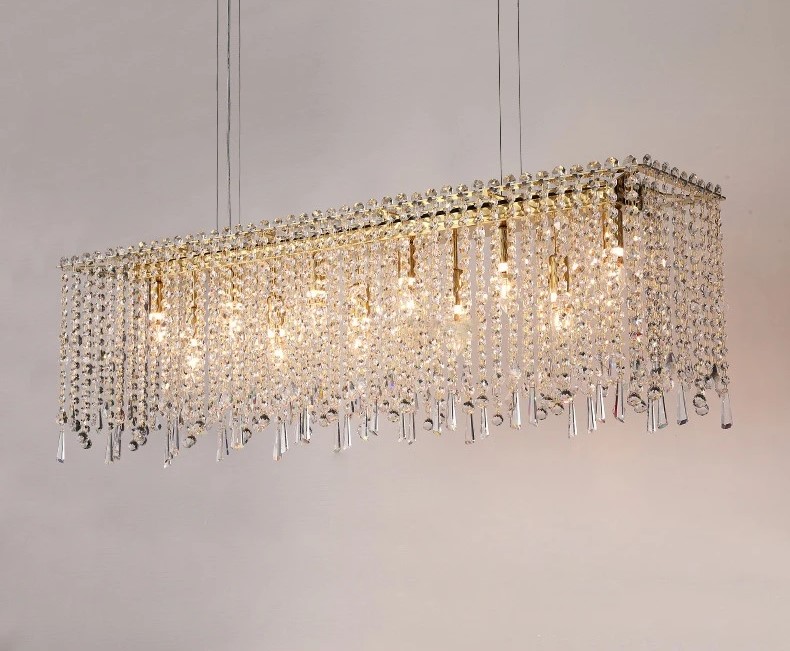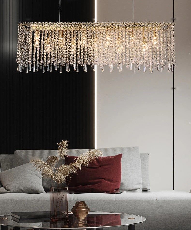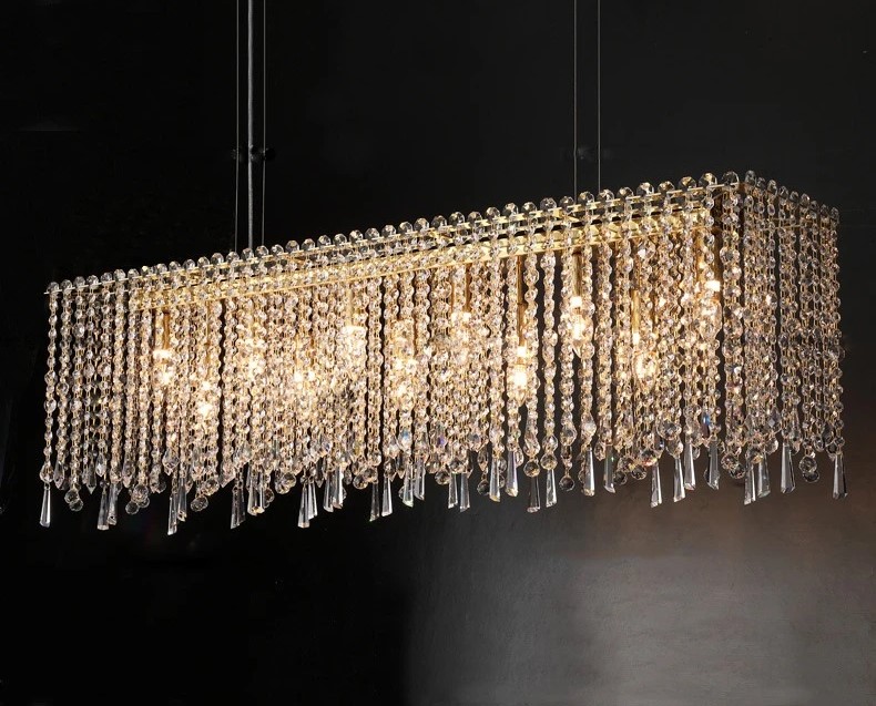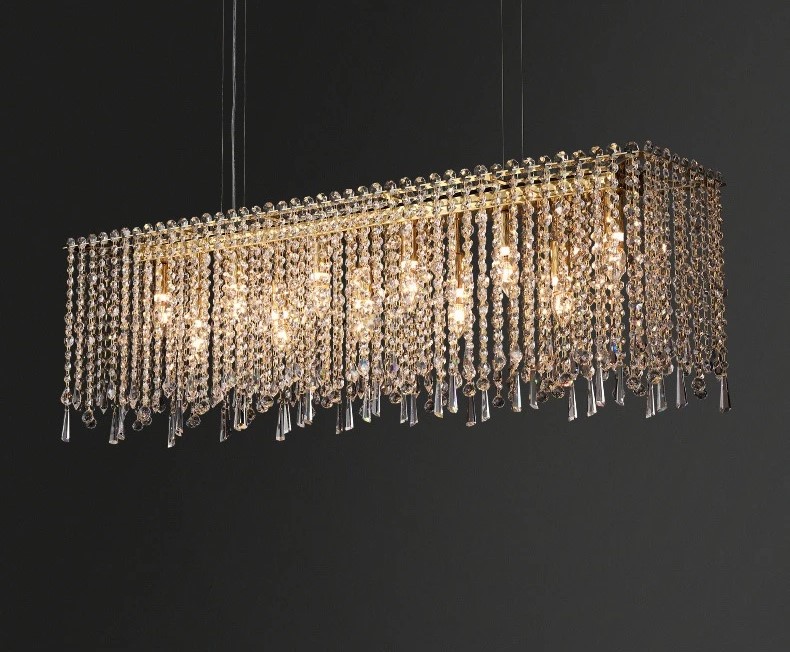 Kryształowa Podłużna Lampa Wisząca Prisma Żyrandol Glamour