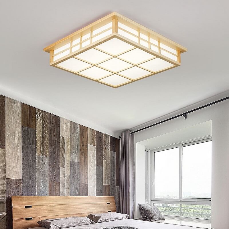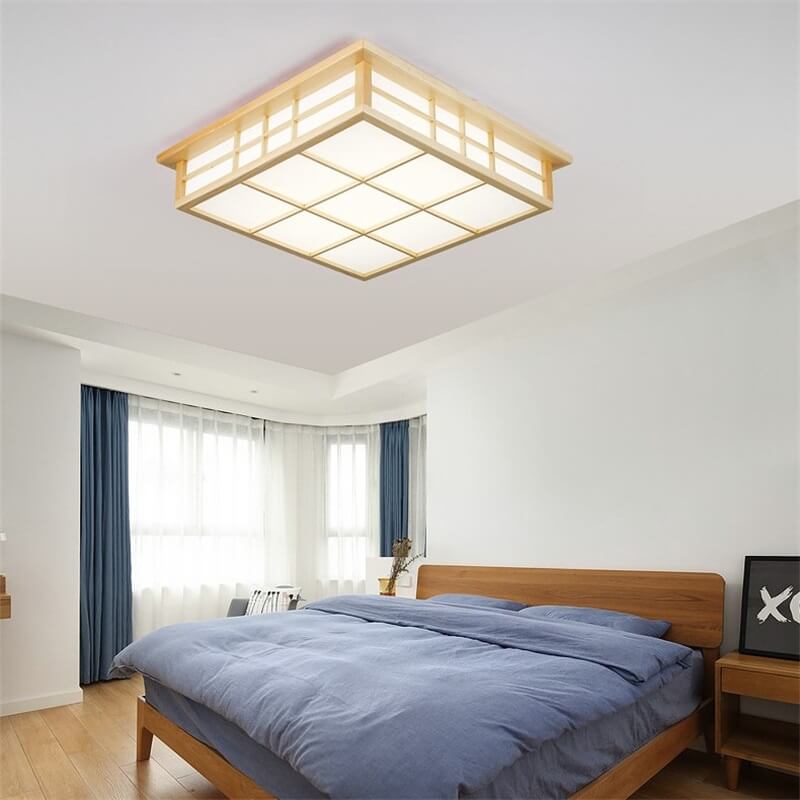 Kwadratowa japońska lampa sufitowa Jinwell LED. Prosty i elegancki plafon w stylu boho idealny do salonu, sypialni, jadalni, korytarza.