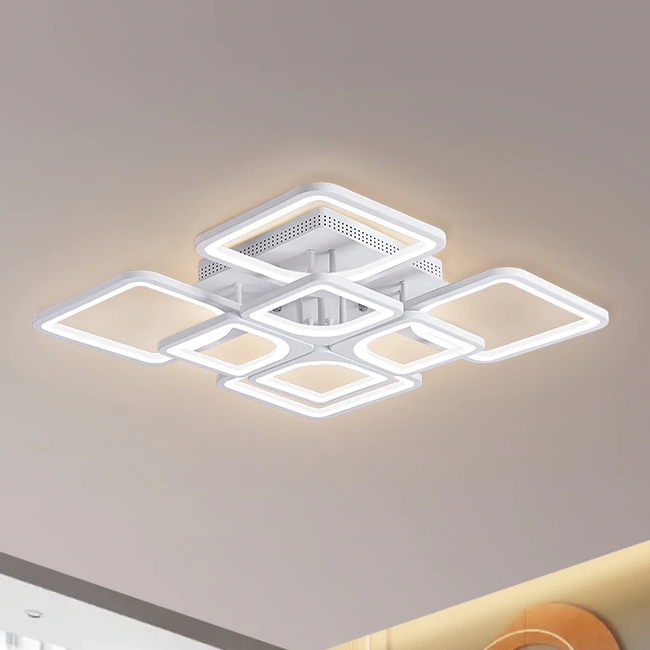 Ta nowoczesna lampa sufitowa LED w kształcie kwadratów to idealny wybór dla osób poszukujących stylowego i wysoce funkcjonalnego oświetlenia. Dzięki swojej mocy zapewnia wystarczającą jasność dla każdego wnętrza oraz oferuje maksymalny komfort i elastyczność dzięki sterowaniu za pomocą pilota. Ściemnialna lampa z możliwością regulacji jasności i temperatury barwowej światła – biała ciepła, biała neutralna i biała zimna – wnosi nie tylko światło do Twojego domu, ale także możliwość dostosowania atmosfery dokładnie do Twoich potrzeb.