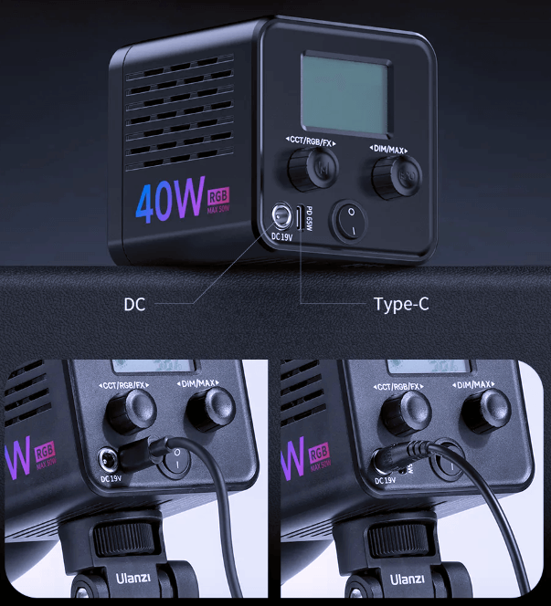 Lampa posiada uniwersalny gwint 1/4″, co pozwala na ustawienie lampy na kamerach, aparatach, uchwytach na telefon lub statywach.