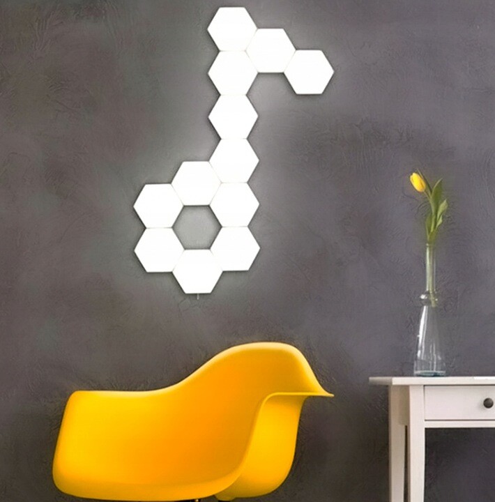 Jest to najnowszy system nowoczesnych lampek modułowych, dotykowych na ścianę w kształcie Hexagonu (sześciokąta).