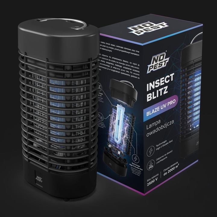 Lampa Insect Blitz Blaze UV PRO No Pest® to urządzenie stworzone z myślą o ochronie dużych przestrzeni przed latającymi insektami – do 2000 m².