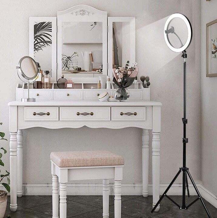 Stworzona z wytrzymałych i zarazem trwałych materiałów wysoko-watowa lampa pierścieniowa LED, wraz ze statywem to idealna pomoc przy tworzeniu zdjęć takich jak portrety, zdjęcia produktów czy makrofotografii. Świetnym zastosowaniem naszej lampy pierścieniowej jest wykorzystanie jej do makijażu. A to wszystko dzięki możliwości dostosowania światła o różnej barwie które idealnie doświetli szczegóły twarzy.