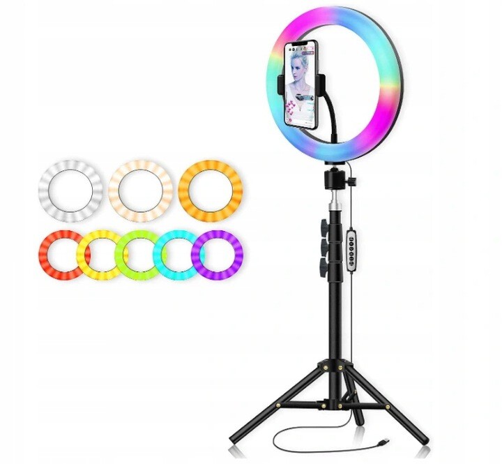LAMPA PIERŚCIENIOWA RING 12 CALI + STATYW REGULOWANY do 220cm RGB