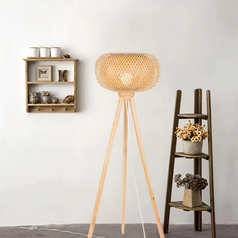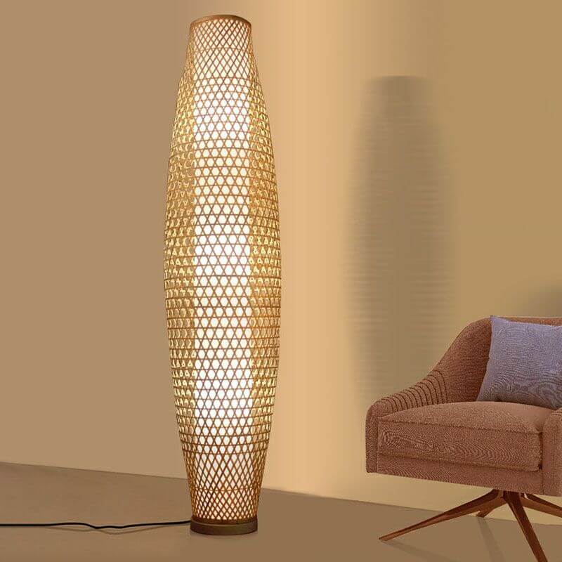 Lampa Podłogowa Bambusowa Ręcznie Tkana Oval Boho