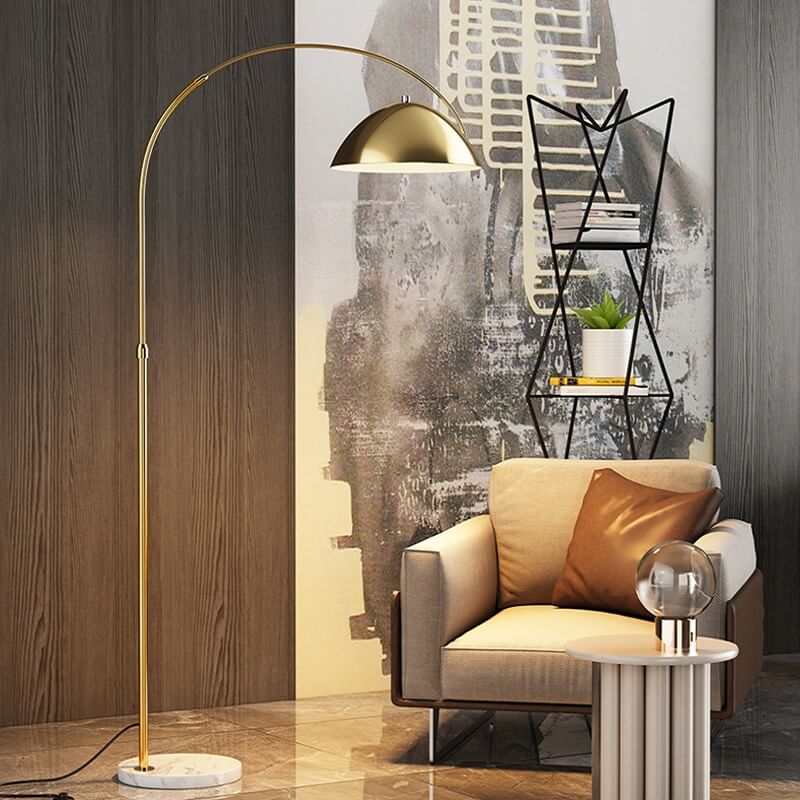 Lampa podłogowa łukowa złota – eleganckie i nowoczesne oświetlenie do salonu i gabinetu