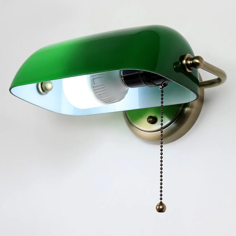 Elegancka i oryginalna lampa ścienna Banker vintage w kolorze zielonym idealna do salonu, sypialni, gabinetu, korytarza.