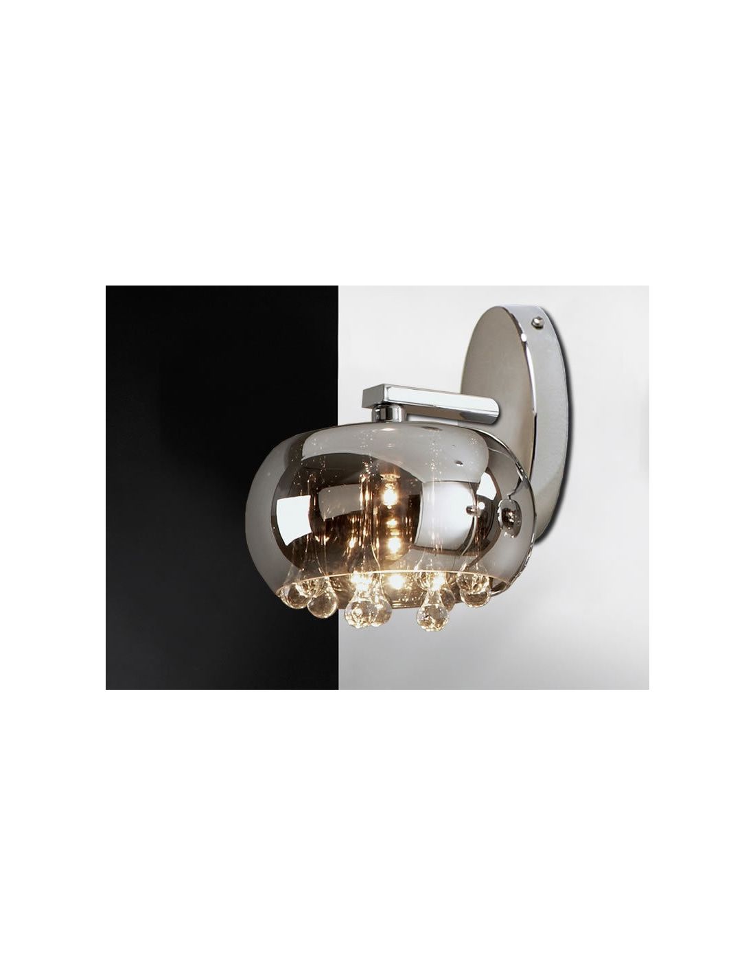 Lampa ścienna Crystal to wytworne rozwiązanie do luksusowych wnętrz. W szklanym wnętrzu zawieszono eleganckie kryształki. Od środka klosz jest dymiony, natomiast z zewnątrz chromowany, co daje różny efekt wizualny w zależności od tego czy światło jest zapalone. Podczas używania oprawa staje się przezroczysta, jednak gdy lampa jest zgaszona, możemy zauważyć jej lśniącą powierzchnię. Lampa sprawdzi się jako element dekoracyjny salonów i sypialni.