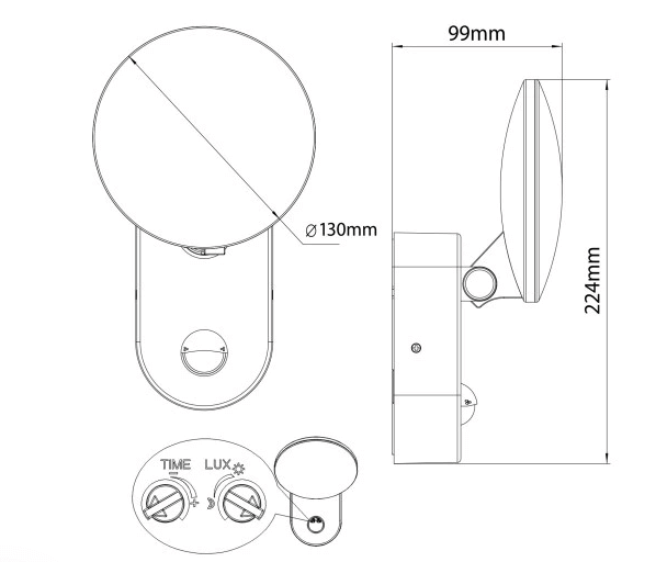 Lampa wyposażona jest w regulację czasu świecenia oraz regulację czułości czujnika zmierzchu. Światło zapali się automatycznie po wykryciu ruchu w zasięgu czujnika i wyłączy po upłynięciu wybranego czasu. Jeśli podczas świecenia lampy czujnik ponownie zarejestruje ruch, wyłączenie światła zostanie opóźnione.