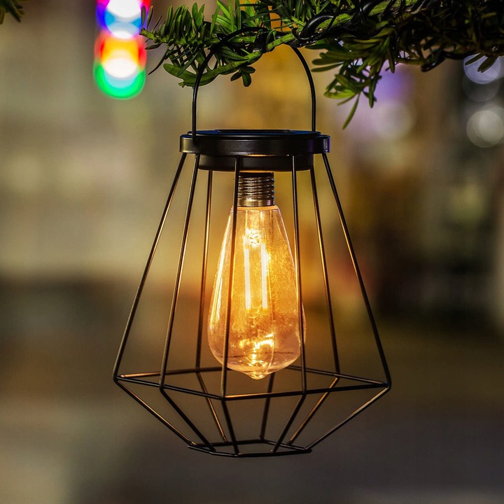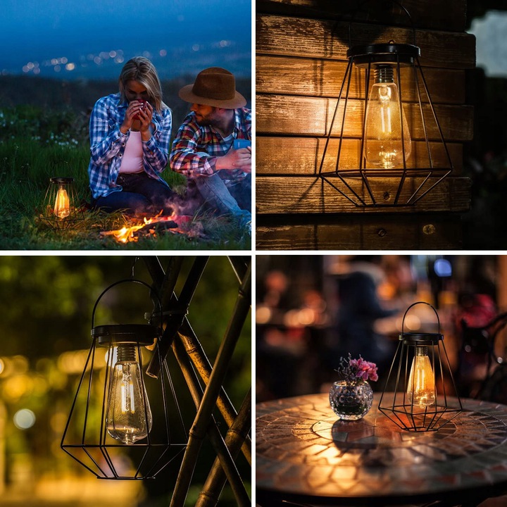 LAMPA SOLARNA ZAWIESZKA RETRO OGRODOWA BALKONOWA WISZĄCA OZDOBA