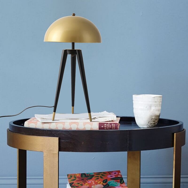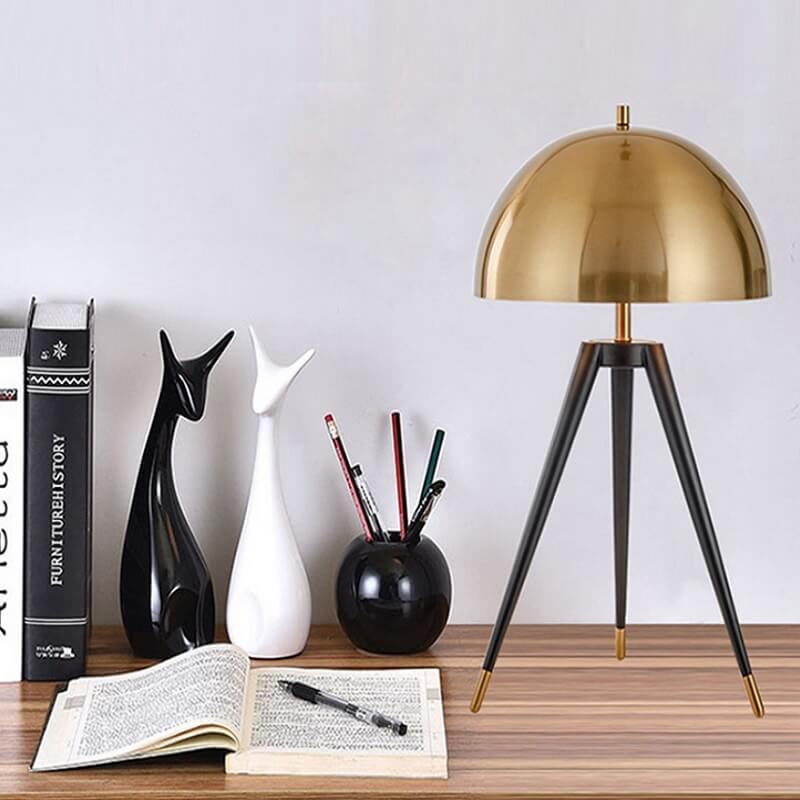Lampa stołowa Eiccholtz Coyote to model lampy, który nawiązuje do stylistyki modnej w połowie XX wieku. Wyposażona w abażur w kształcie kopuły w złotym wykończeniu i czarne zwężające się nogi ze złotymi mosiężnymi „czapkami”. Ta współczesna lampa podłogowa na statywie nada Twojemu wystrojowi stylowy wygląd. Z takim dodatkiem każde wnętrze prezentuje się bardzo elegancko.