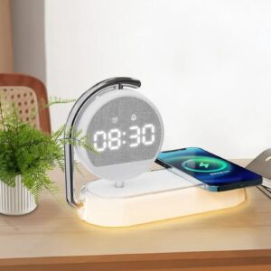 Obrotowy Zegar Budzik Lampka Bezprzewodowa Ładowarka Biały