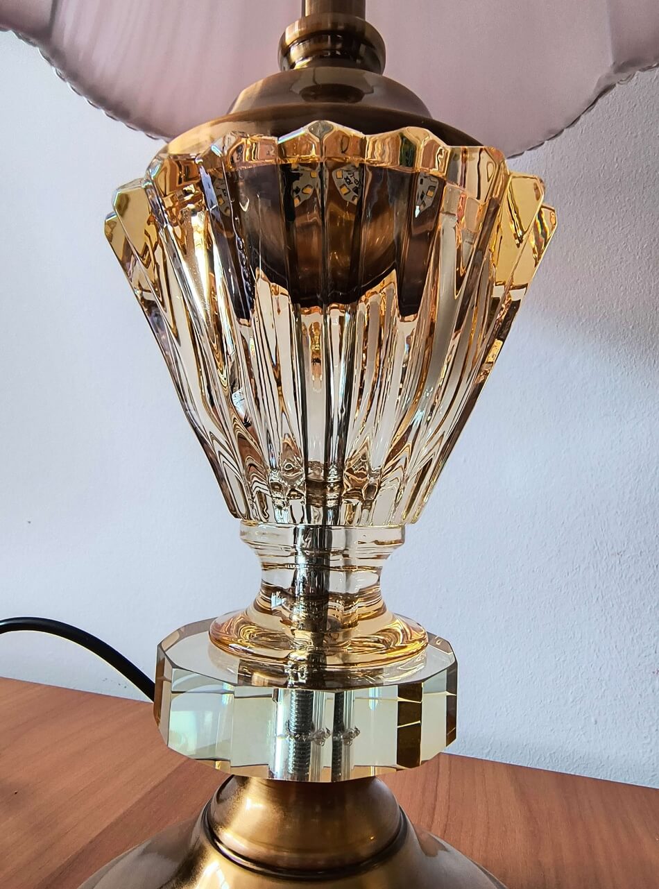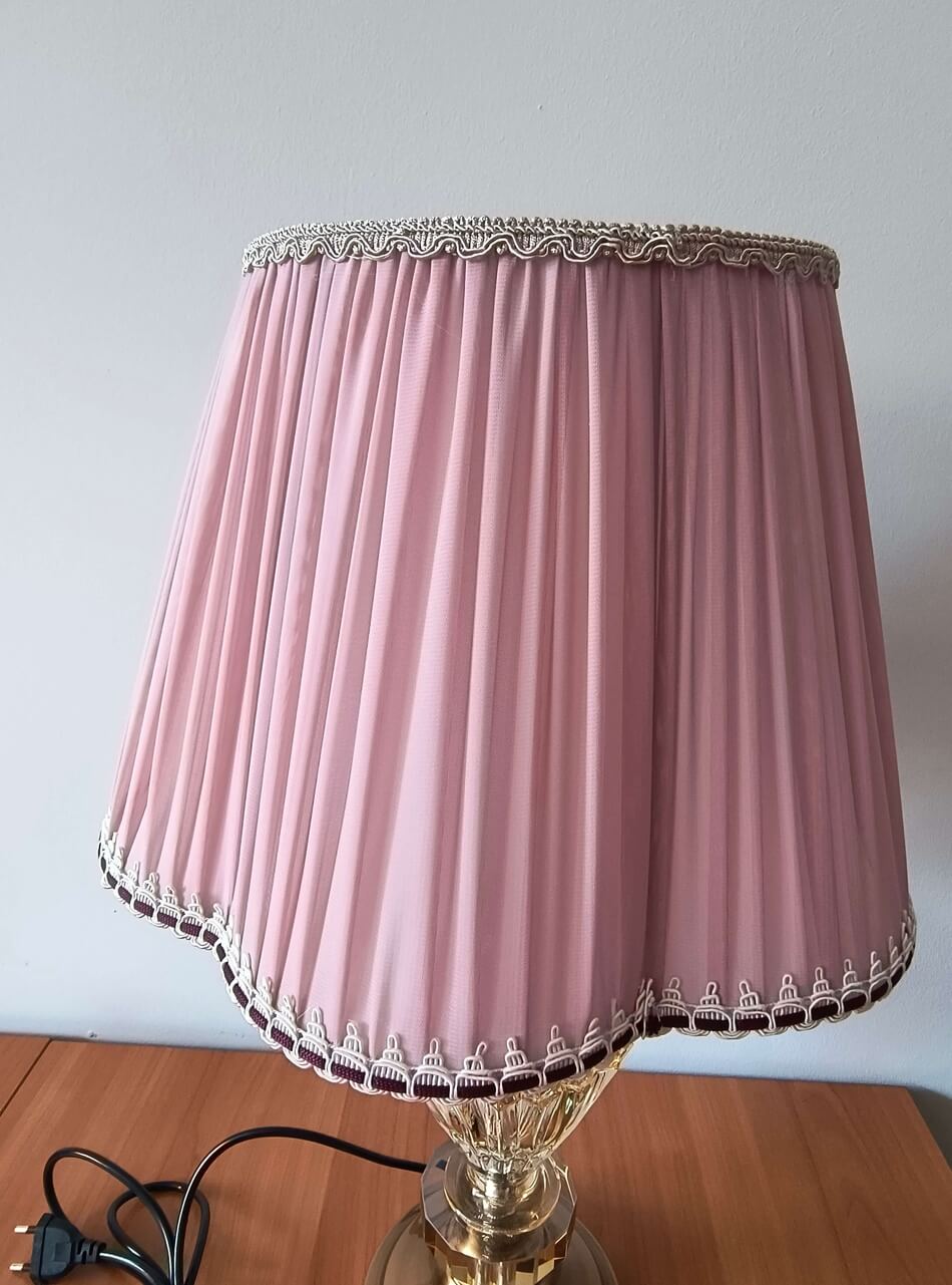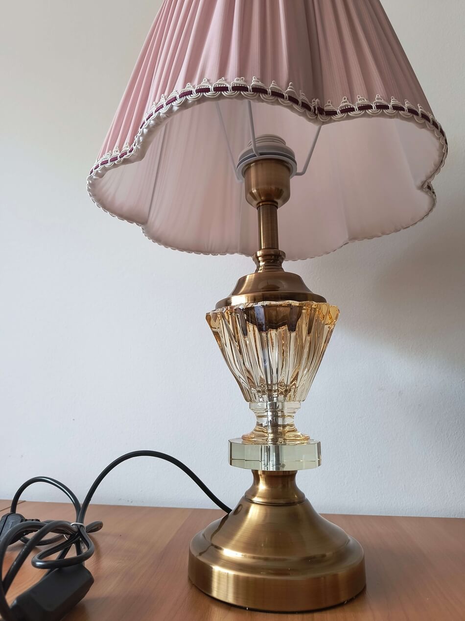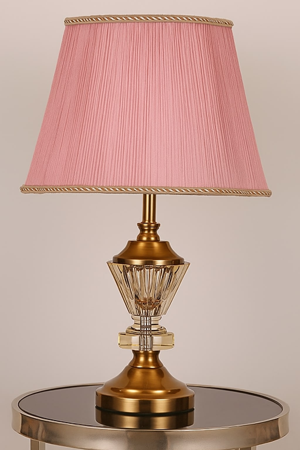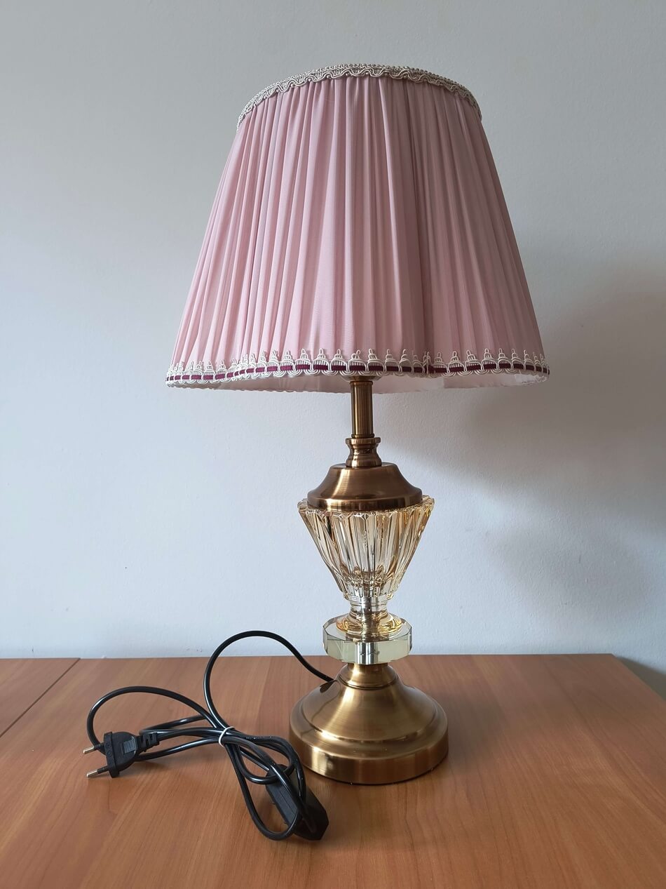 Lampa stołowa kryształowa pudrowy róż idealna do sypialni lub salonu.