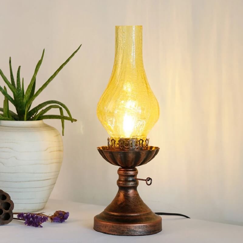 Rustykalna naftowa lampa stołowa Kerosene idealna do sypialni, salonu, gabinetu.