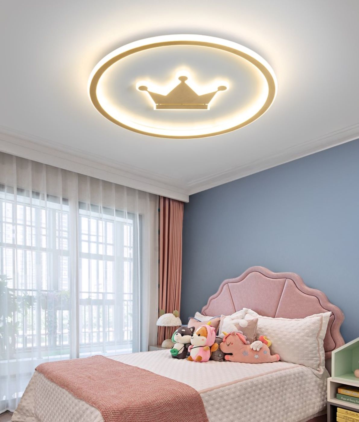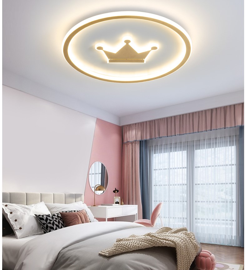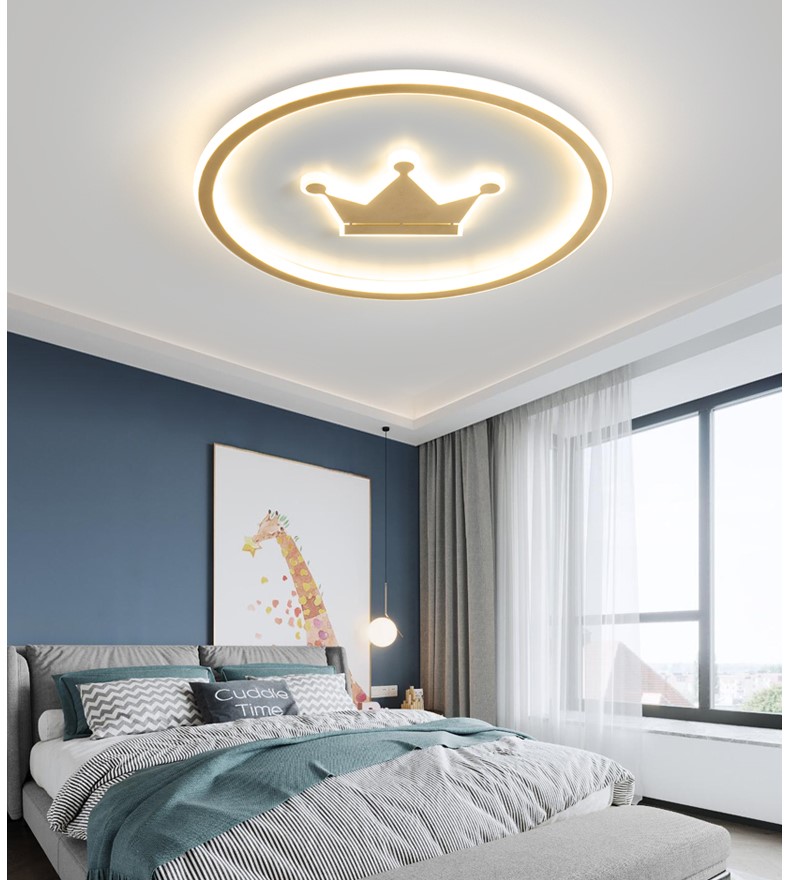 Nowoczesna Okrągła Lampa Sufitowa Korona Idealna Do Pokoju Dziecięcego w Kolorze Złotym