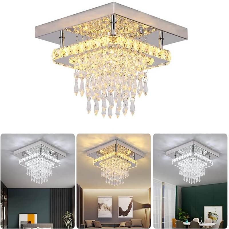Nowoczesna elegancka kryształowa lampa sufitowa. Geometryczny plafon LED w kolorze srebrnym idealny do salonu, jadalni, sypialni, korytarza.
