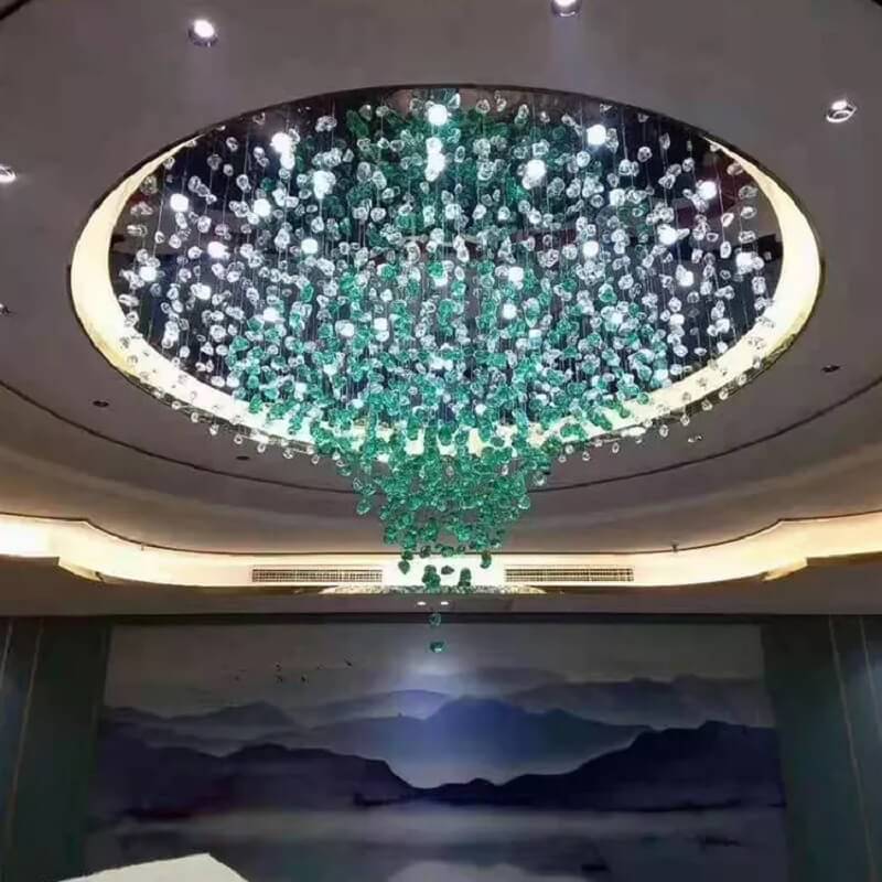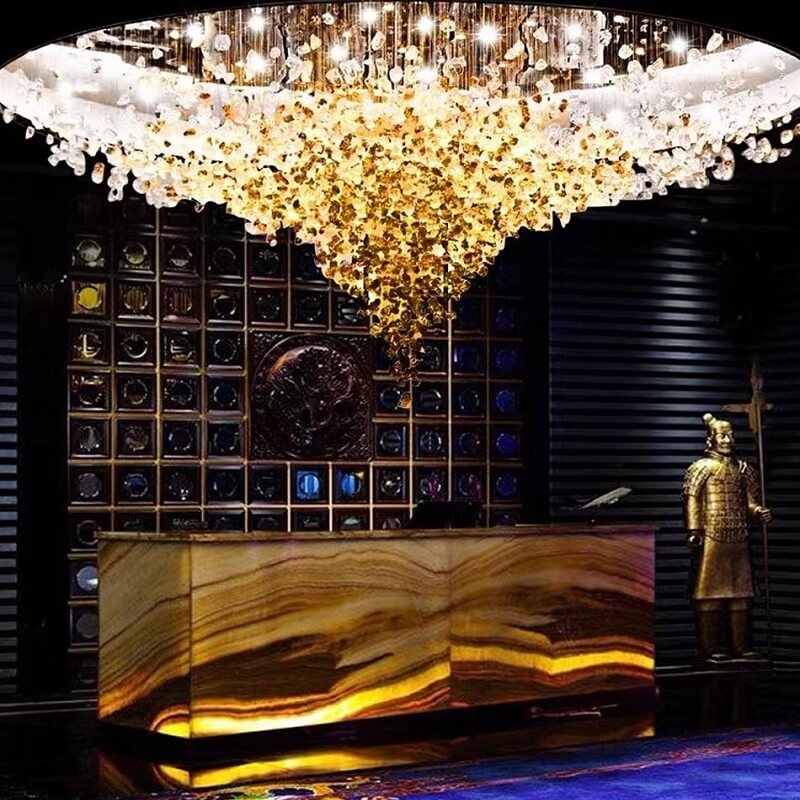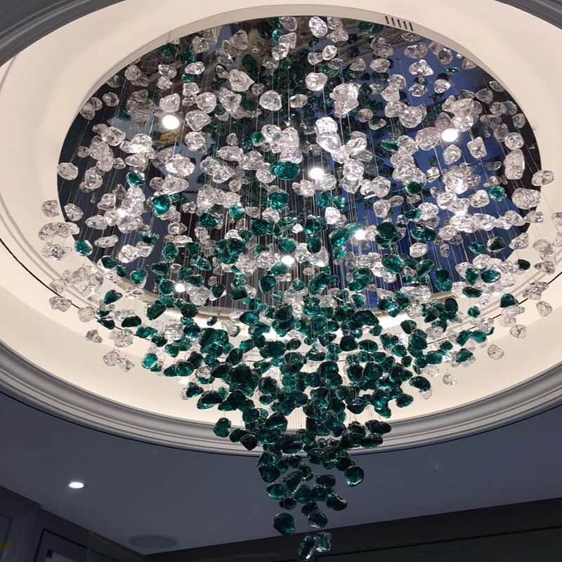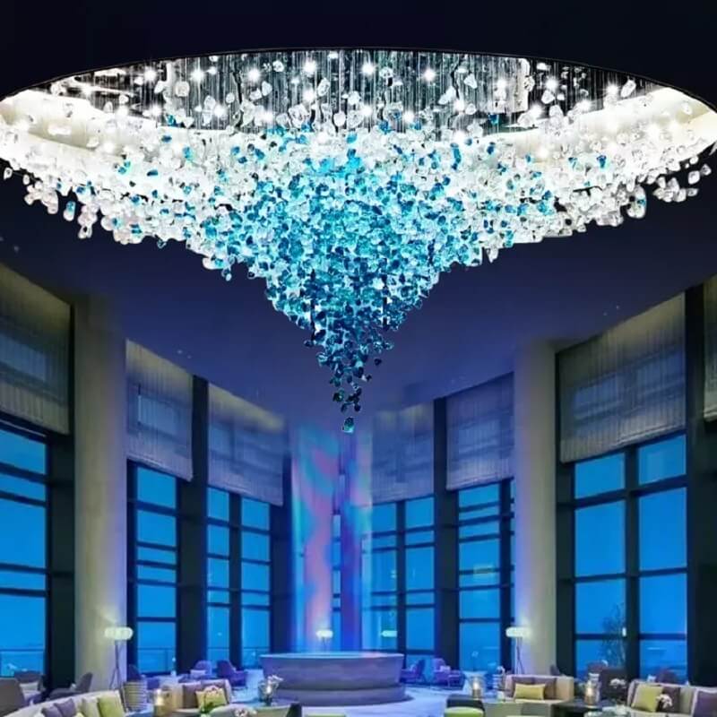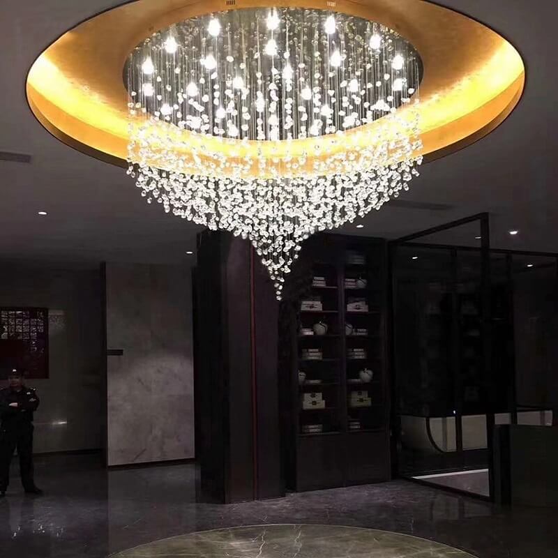 Nowoczesna zjawiskowa i luksusowa lampa sufitowa Kryształowy Wir idealna do salonu, hotelu, na salę bankietową.