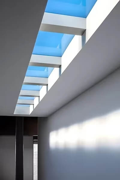 Panel na grafikach produktowych tworzy efekt dekoracyjny, który może kojarzyć się z koncepcją „sztucznego słońca” i „okna świetlnego” — imitacją świetlika/okna z niebieskim „niebem” panel jest do zabudowy w karton-gipsie.