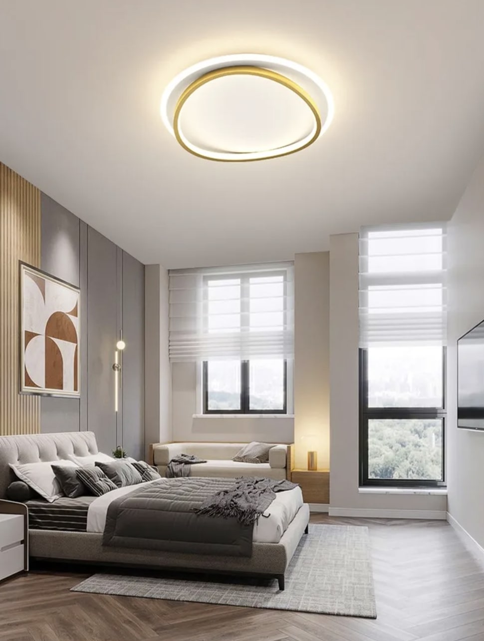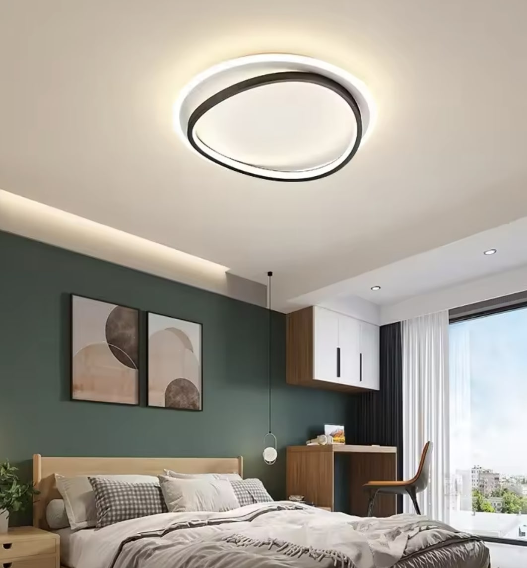 Ta okrągła lampa sufitowa LED to świetny wybór dla osób szukających efektownego, ale nieprzytłaczającego oświetlenia, które będzie funkcjonalne i estetyczne. Jej nowoczesny, geometryczny design z okrągłą podstawą i lekko wygiętym, trójwymiarowym obramowaniem, łączy prostotę z delikatną dynamiką łuków, co nadaje lampie elegancji i lekkości. Idealna jako źródło światła w salonie, jadalni, sypialni, a także nowoczesnym biurze. Dzięki estetycznemu wyglądowi i łagodnemu światłu może też pełnić funkcję dekoracyjnego elementu wystroju. Czarna i biała lampa świetnie sprawdzi się w aranżacjach minimalistycznych lub loftowych. Złota wersja kolorystyczna, ze względu na bardziej luksusowy charakter, będzie idealna do wnętrz glamour, nowoczesnych lub w stylu art deco.