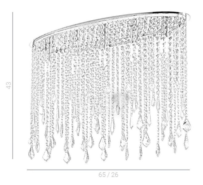 Plafon Kaas to niezwykle elegancka lampa. Klosz wykonany jest z kilku równomiernie ułożonych kryształowych wisiorków, które w przepiękny sposób odbijają światło tworząc przyjemną i estetyczną poświatę.