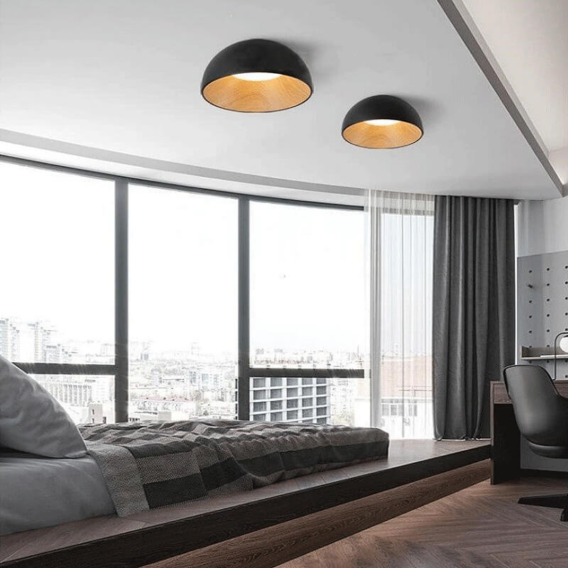 Skandynawska i minimalistyczna lampa sufitowa Padella. Plafon w kolorze białym i czarnym idealny do sypialni, salonu, kuchni.