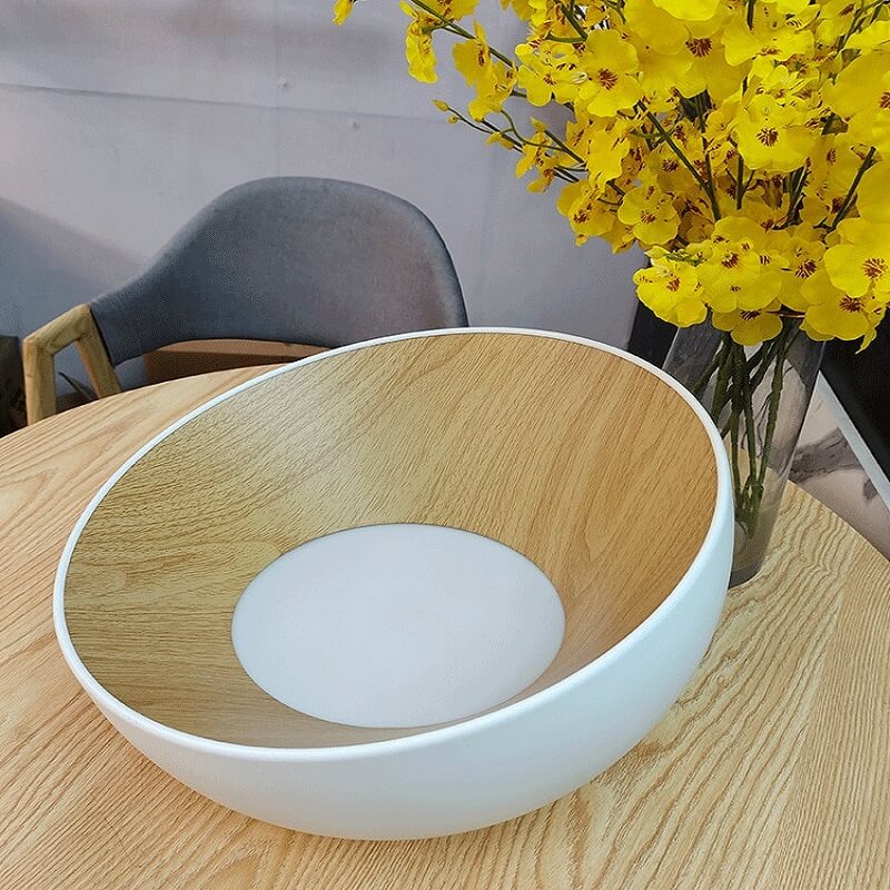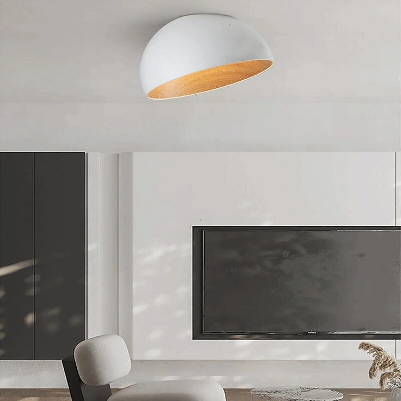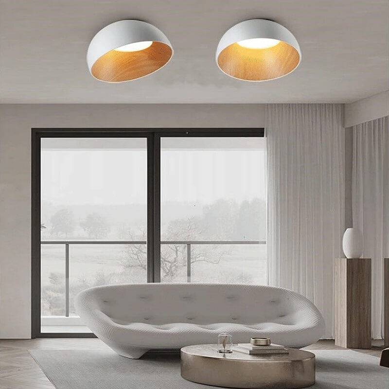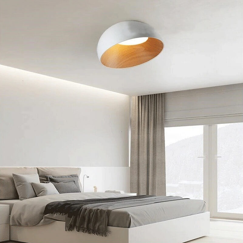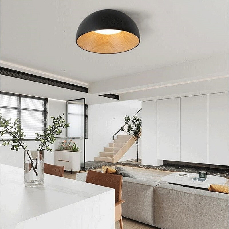 Lampa sufitowa plafon Padella w kolorze białym lub czarnym, wykonany został z z aluminium oraz akrylu. Unikalna forma oświetlenia w kształcie misy cechuje się funkcjonalnością i praktycznością. Połączenie kolorów oprawy czerni lub bieli i imitacji drewna naturalnego nadaje lampie lekkości i dodaje elegancji. Wysoka jakość wykonania oraz ergonomiczna konstrukcja lampy gwarantuje łatwość w utrzymaniu czystości. Oświetlenie doskonale prezentuje się zarówno w towarzystwie innych lamp, jak i pojedynczo.