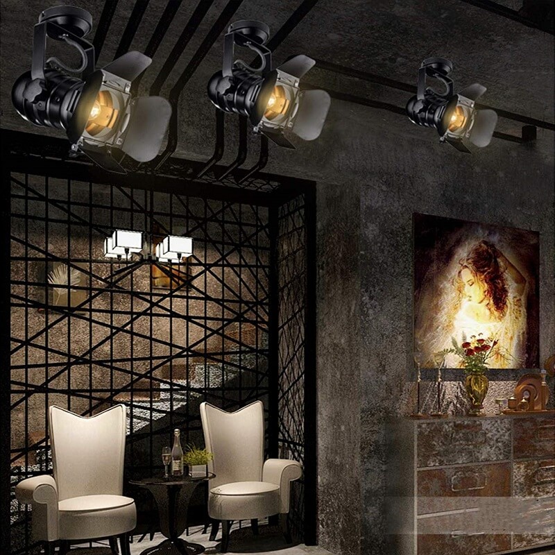 Reflektor ścienny został zaprojektowany w stylu reflektora filmowego i jest wykonany z czarnego metalu. Regulowana oprawa wygląda bardzo autentycznie dzięki ruchomym klapkom przymocowanym do odbłyśnika.