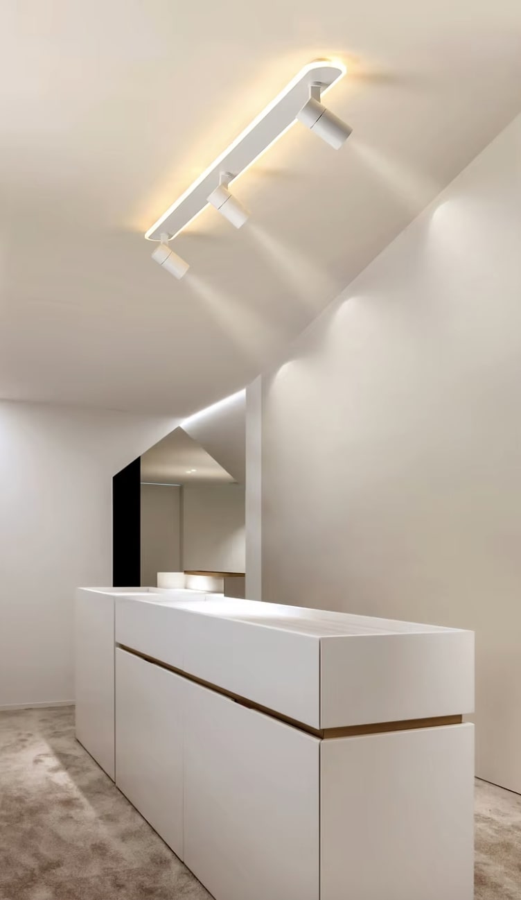 Wprowadź do swojego wnętrza nowoczesny akcent z designerską lampą sufitową LED, która łączy minimalistyczną formę z maksymalną funkcjonalnością. Dzięki regulowanym reflektorom stworzysz dokładnie taki nastrój, jakiego potrzebujesz – od intymnego światła w salonie, po precyzyjne doświetlenie wybranych stref w kuchni, czy gabinecie. Dodatkowe podświetlenie LED, subtelnie rozproszone wokół owalnej ramy, tworzy przytulną, nowoczesną atmosferę. Lampa idealnie sprawdzi się w nowoczesnych wnętrzach, salonie, jadalni, gabinecie, garderobie, kuchni, a także w przestrzeniach komercyjnych, jak recepcja, hol, butik, hotel.
