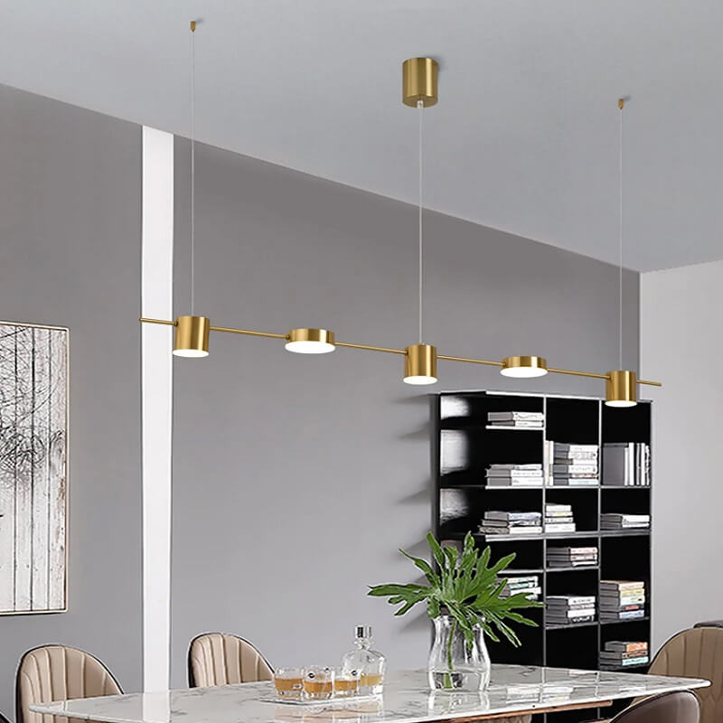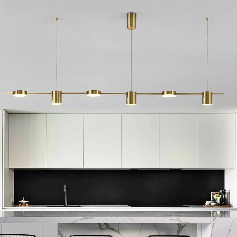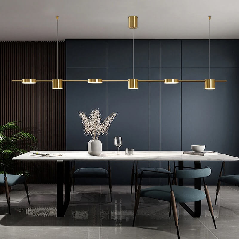 Nowoczesna minimalistyczna i stylowa podłużna lampa wisząca Remdal LED idealna do salonu, jadalni, kuchni.