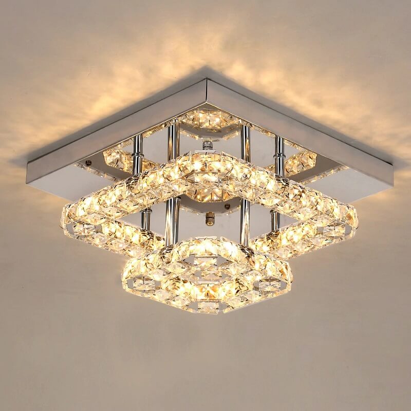 Nowoczesna elegancka kryształowa lampa sufitowa Wiszące Kryształy. Plafon LED idealny do salonu, sypialni, korytarza, biura, jadalni.