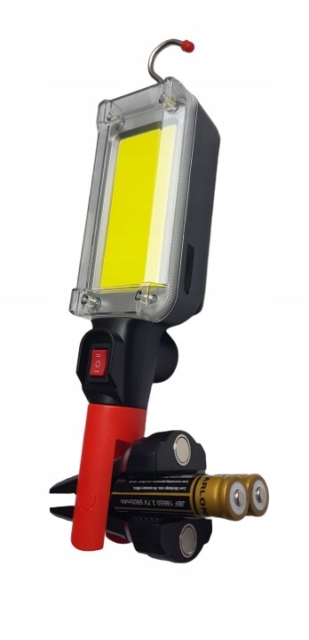 Niezawodna lampa LED zasilana z akumulatorów 2x 1200 mAh 3,7 V, niezastąpiona w warsztatach i serwisach, garażach majsterkowiczów. Produkt fabrycznie nowy, wysokiej jakości. Jest bardzo wygodna i praktyczna, przyda się w każdej sytuacji wymagającej poręcznego, dodatkowego źródła światła. Wyprofilowana obudowa lampy została wykonana z wysokiej jakości tworzywa dającego odporności na trudne warunki eksploatacji, uderzenia oraz uniemożliwiającego wyślizgiwanie się lampy z mokrej dłoni. Wyposażona w silny uchwyt magnetyczny pozwalający na przytwierdzenie lampy do metalowych powierzchni. Wyposażona w praktyczny i pomocny metalowy hak do zawieszania lampy w wybranym miejscu.