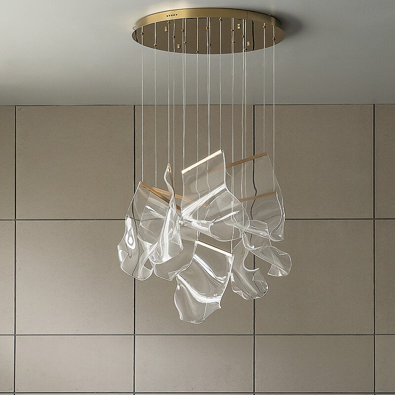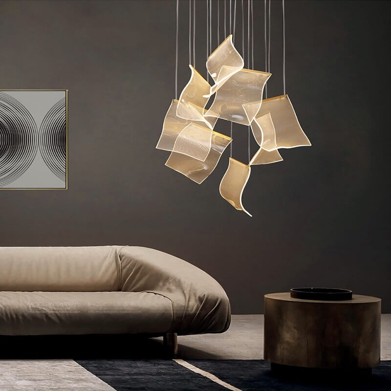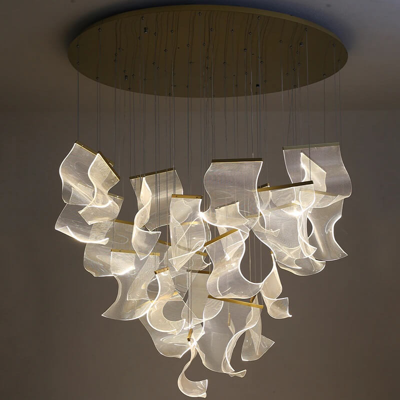 Lampa została wykonana z połączenia aluminium, akrylu oraz stali nierdzewnej, co gwarantuje trwałość, odporność na uszkodzenia i długotrwałe użytkowanie. Inspirowany sztuką koncept „papierowych kartek” nadaje lampie lekkości i dynamiki, czyniąc ją unikatowym elementem dekoracyjnym, który podnosi estetyczny appeal wnętrz. Dodatkowo, elegancja jej designu sprawia, że lampa doskonale komponuje się z różnymi stylami aranżacji.
