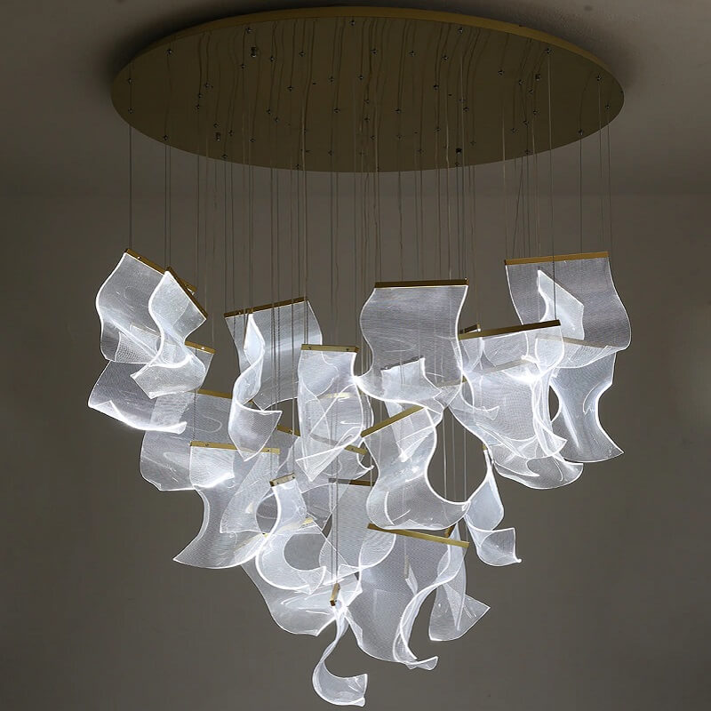 Wprowadź do swojego wnętrza odrobinę sztuki z naszą lampą wiszącą akrylową papier artystyczny LED. Ta nowoczesna i niepowtarzalna lampa zachwyca formą inspirowaną delikatnością papierowych kart, tworząc wyjątkowy efekt wizualny, który przyciąga spojrzenia i dodaje wnętrzu wyrafinowanego charakteru. Doskonale sprawdzi się w salonie, sypialni oraz jadalni, tworząc niepowtarzalną atmosferę i podkreślając indywidualny styl Twojego wnętrza.