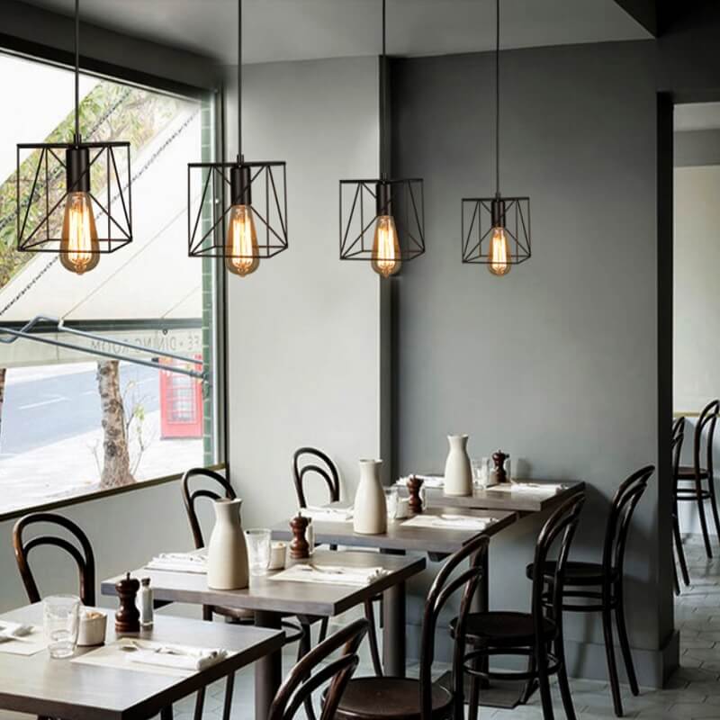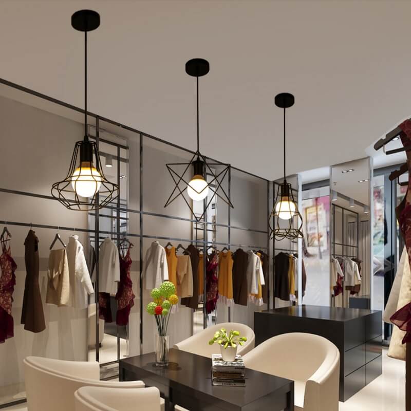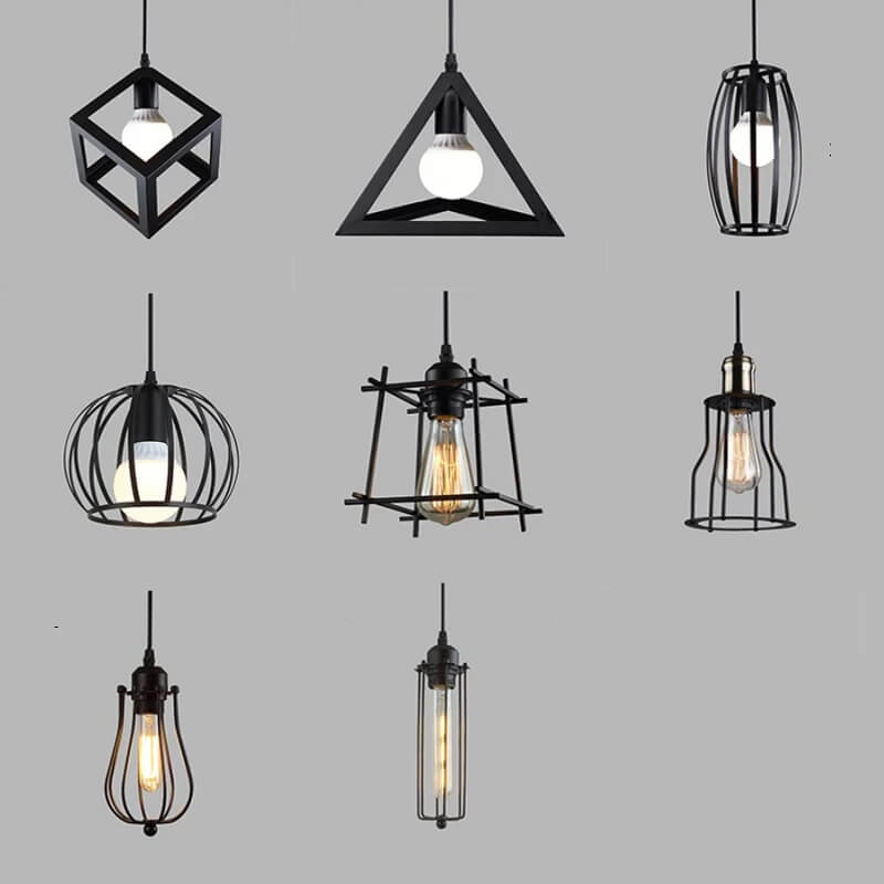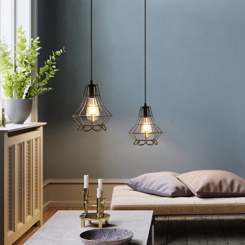 Minimalistyczna metalowa lampa wisząca druciana w stylu loft w kolorze czarnym idealna do salonu, jadalni, sypialni.