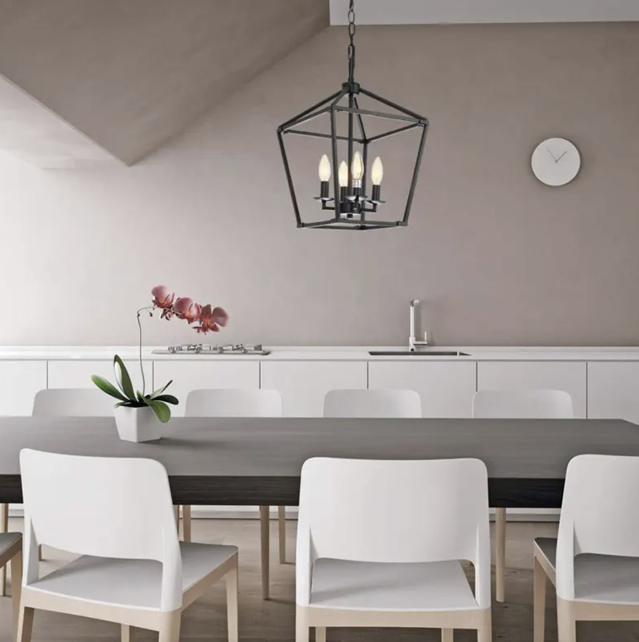 Klasyczna elegancja w loftowym wydaniu. Połączenie ponadczasowej formy latarni z industrialnym charakterem wprowadza niepowtarzalną atmosferę w każdym pomieszczeniu. Metalowa konstrukcja tworzy elegancki, geometryczny klosz w kształcie trapezu. Brak szkła i otwarta forma nadają lampie lekkości i przestronności, pozwalając światłu swobodnie rozświetlać całe pomieszczenie. Wewnątrz znajdują się cztery klasyczne oprawki w stylu świecowym, idealne do zastosowania dekoracyjnych żarówek filamentowych, które dodają nastrojowego uroku. Idealna dla osób ceniących elegancki minimalizm i funkcjonalność oraz styl loftowy, industrialny, rustykalny lub nowoczesny klasyczny. Doskonała do salonu, jadalni (nad stołem), kuchni (nad wyspą), przedpokoju, a także do przestrzeni komercyjnych, jak restauracja, bar, czy kawiarnia.