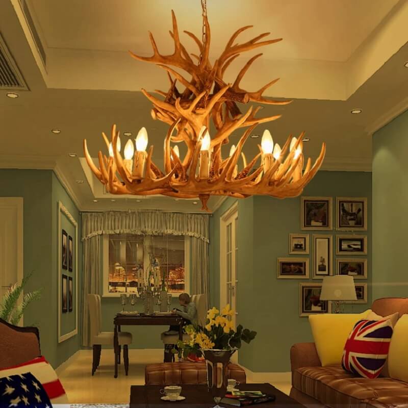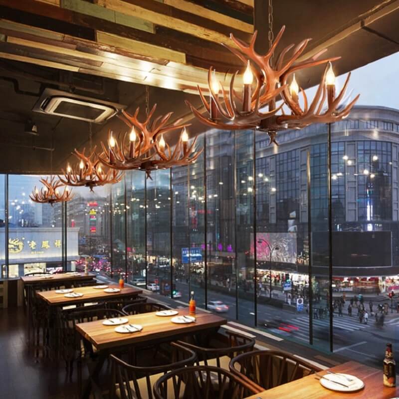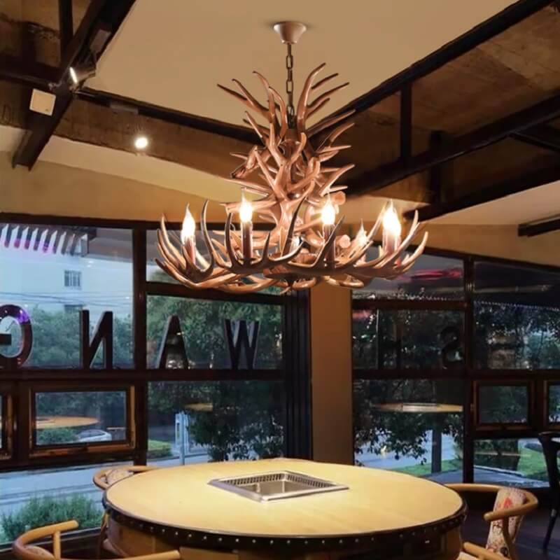 Rustykalna i oryginalna lampa wisząca Lindby. Żyrandol poroże w kolorze białym i brązowym idealny do salonu, sypialni, kuchni, jadalni.