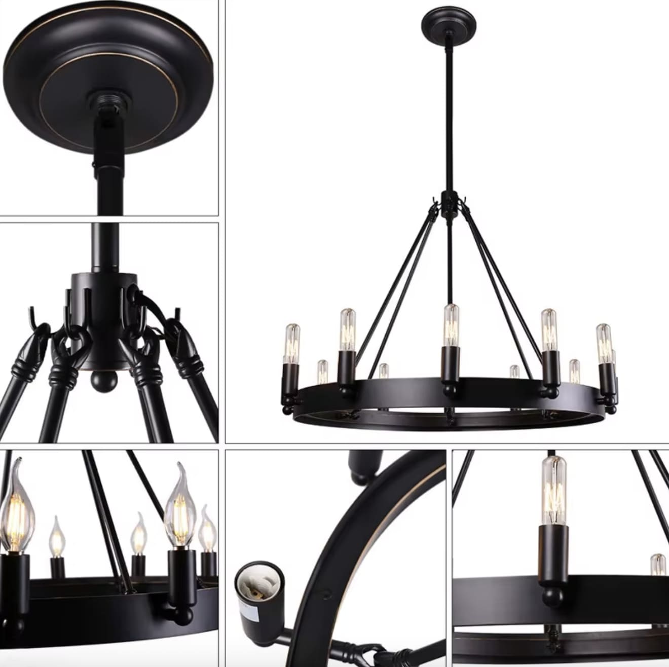 Lampa wisząca okrągła w stylu farmhouse, vintage. Doskonała do salonu, jadalni, sali bankietowej, holu, hotelu.