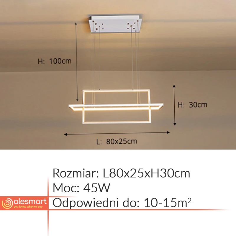 Nowoczesna minimalistyczna lampa wisząca świecące 2 prostokąty w kolorze białym, czarnym i złotym. Idealna do jadalni, salonu, restauracji, baru.