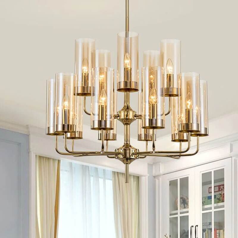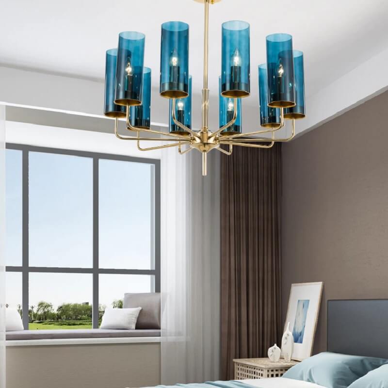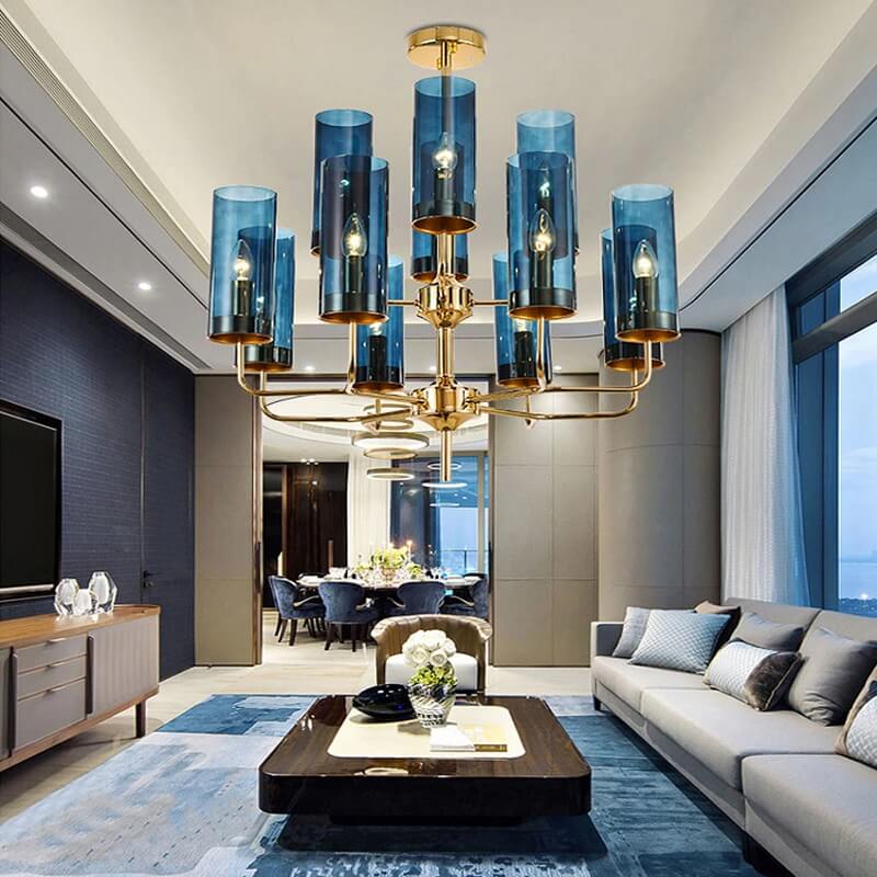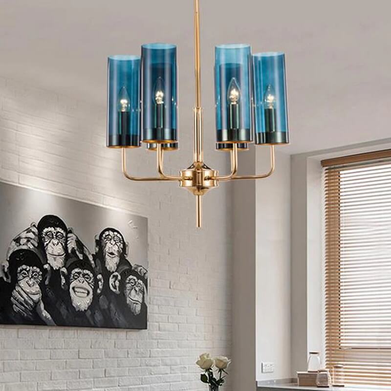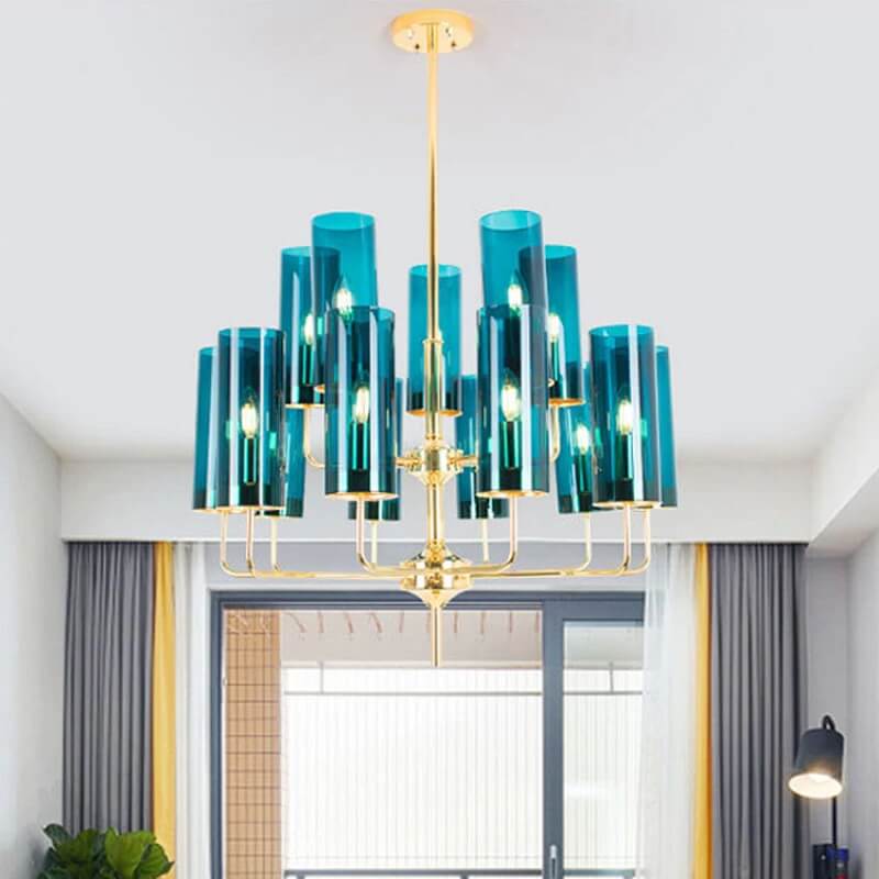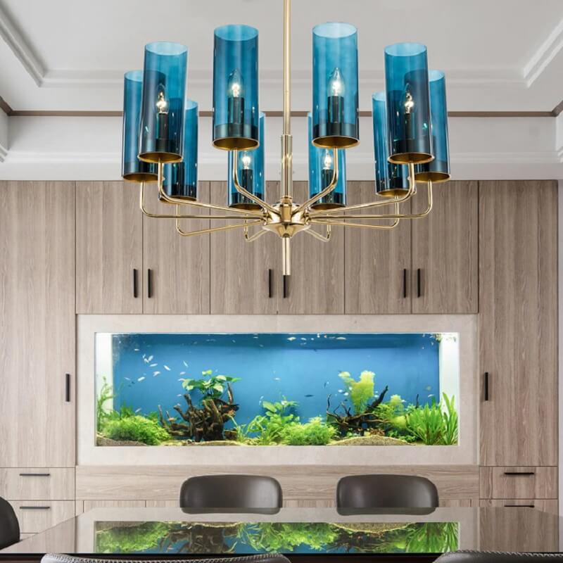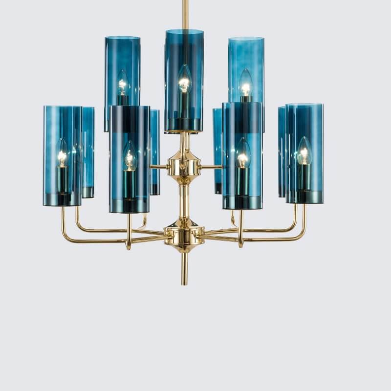 Lampa wisząca Eterion to kolekcja klasycznych żyrandoli przełamanych nietypową formą i kolorystyką szkła.