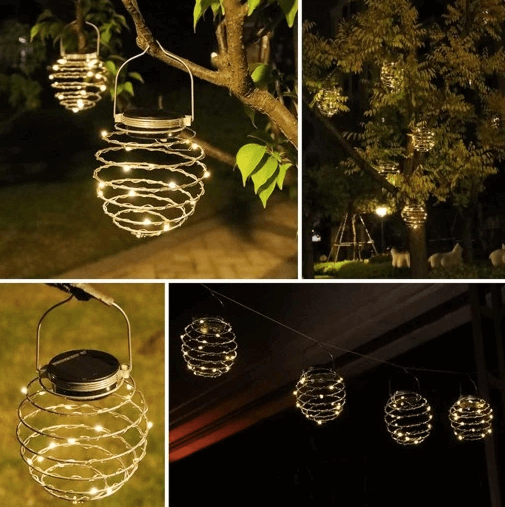 Lampion solarny z ciepłymi białymi diodami LED solidnie owiniętymi w odporny na zużycie drut, prezentuje trójwymiarowy model, który doda uroku do Twojego ogrodu.