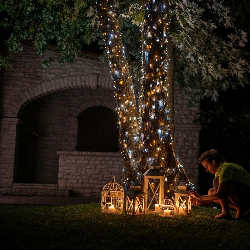 Lampki choinkowe Twinkly Strings to rewolucyjny ciąg lampek LED wyposażonych w najbardziej zaawansowaną technologię do dekorowania Twojego domu. Twinkly Gold Edition wnosi ciepło i elegancję klasycznych odcieni bieli na nowy poziom za pomocą dedykowanych diod emitujących kolory bursztynu oraz ciepłej i zimnej bieli. Zestaw składa się z 250 jasnych diod AWW, kontrolera z połączeniem wi-fi i bluetooth oraz najnowocześniejszej aplikacji na smartfona. Wszystko razem pozwala na łatwe i szybkie tworzenie niesamowitych animacji.