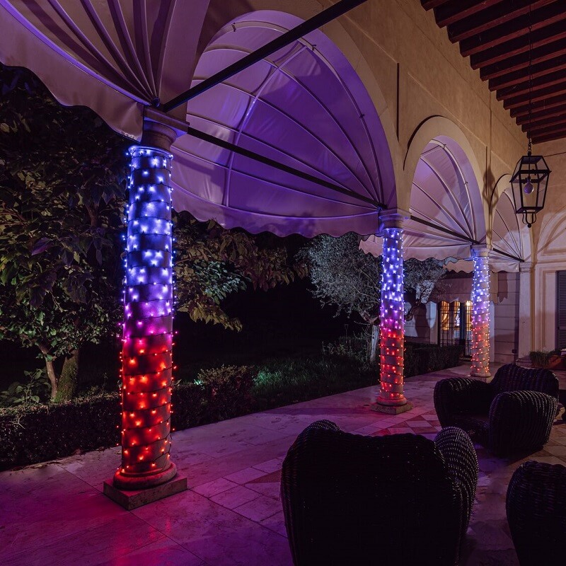 Inteligentny łańcuch 400 diod multikolor RGB+W ciepła biel. Twinkly Special Edition łączy żywe kolory RGB z klasyczną ciepłą bielą czystego światła za pomocą najnowszej diody RGB+W. Nasza najbardziej wyrafinowana dioda LED, z nową strukturą 4-kanałową emitującą wszystkie kolory tęczy Twinkly oraz idealną, czystą biel. Dyfuzyjna połowa soczewki miesza ze sobą kolory RGB, połowa przejrzysta sprawia, że lśnią. Twinkly Strings to 400 jasnych, kolorowych diod LED RGB+W ciepła biel, kontroler z połączeniem wi-fi i bluetooth oraz najnowocześniejsza aplikacja na smartfona. Wszystko razem pozwala na łatwe i szybkie tworzenie niesamowitych animacji.
