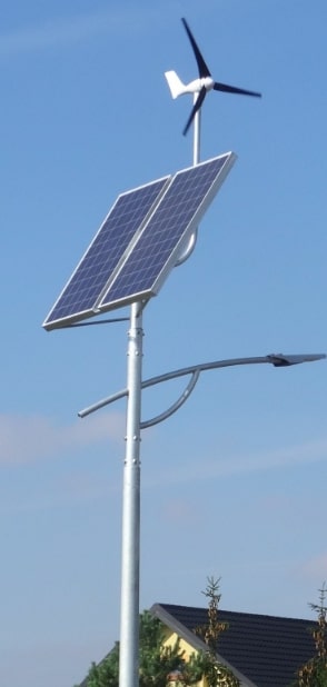 Hybrydowe oświetlenie solarne, zasilane energią słoneczną i wiatrową. Łatwa do zainstalowania latarnia solarna LED ma wysokość do 6 metrów i posiada inteligentny system zarządzania – jest doskonałym źródłem światła, a jej działanie nie wymaga ingerencji człowieka oraz prac ziemnych koniecznych do położenia długich przewodów zasilających. Lampa w całości energię pobiera z promieni słonecznych i wiatru, a jej nadmiar magazynuje wykorzystując w dni pochmurne i bezwietrzne.