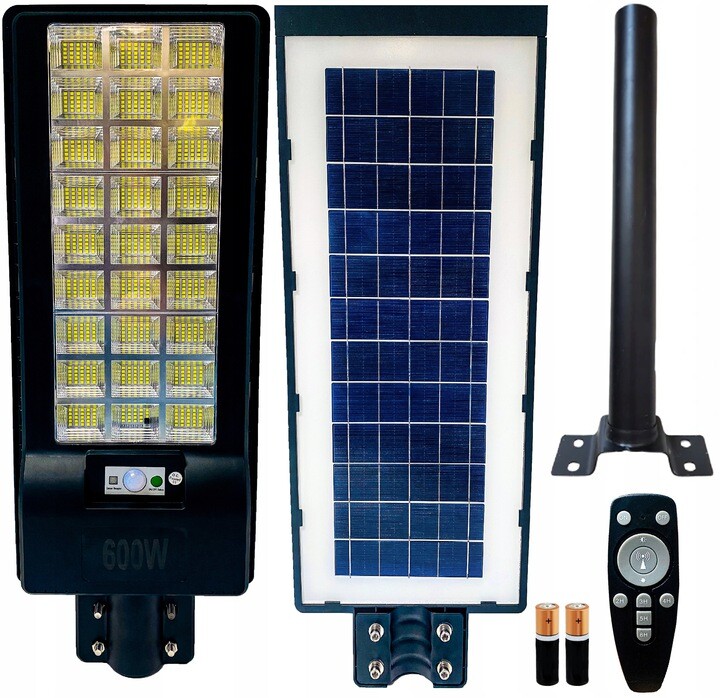 Latarnia SOLARNA 600W W Z PANELEM SOLARNYM, WYPOSAŻONA W CZUJNIK ZMIERZCHU i RUCHU + PILOT + MOCOWANIE