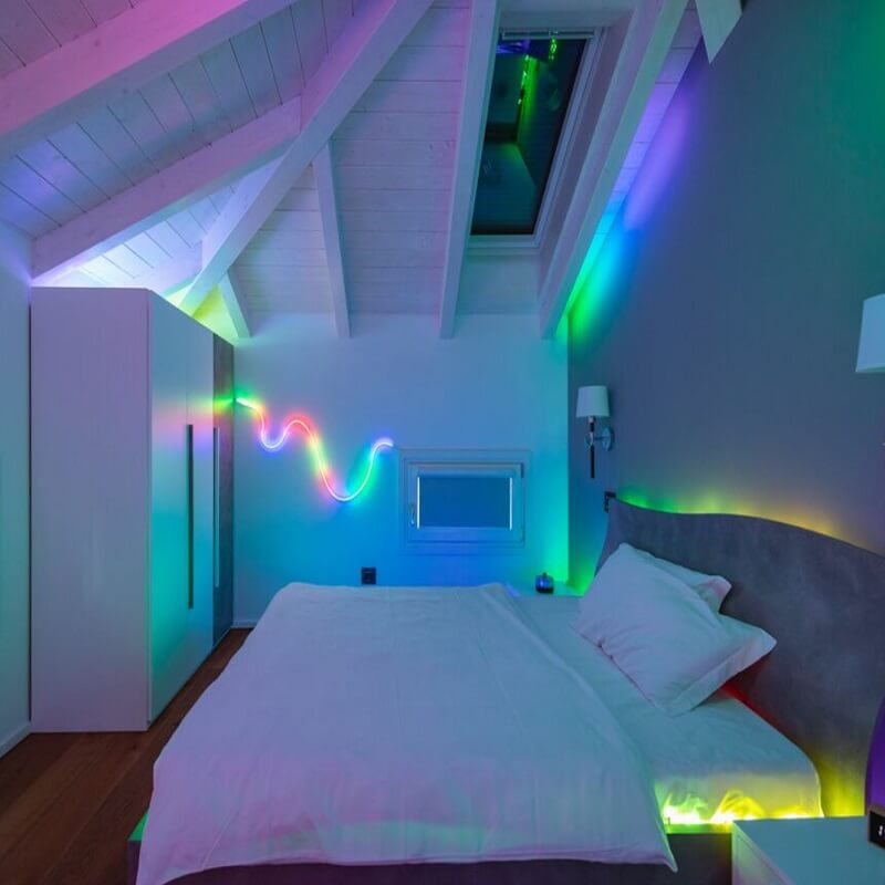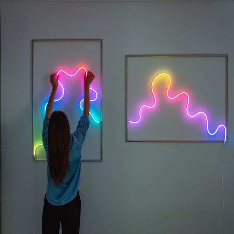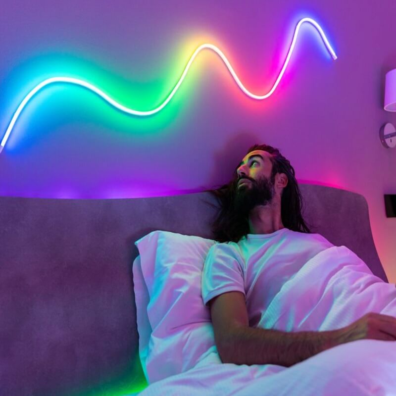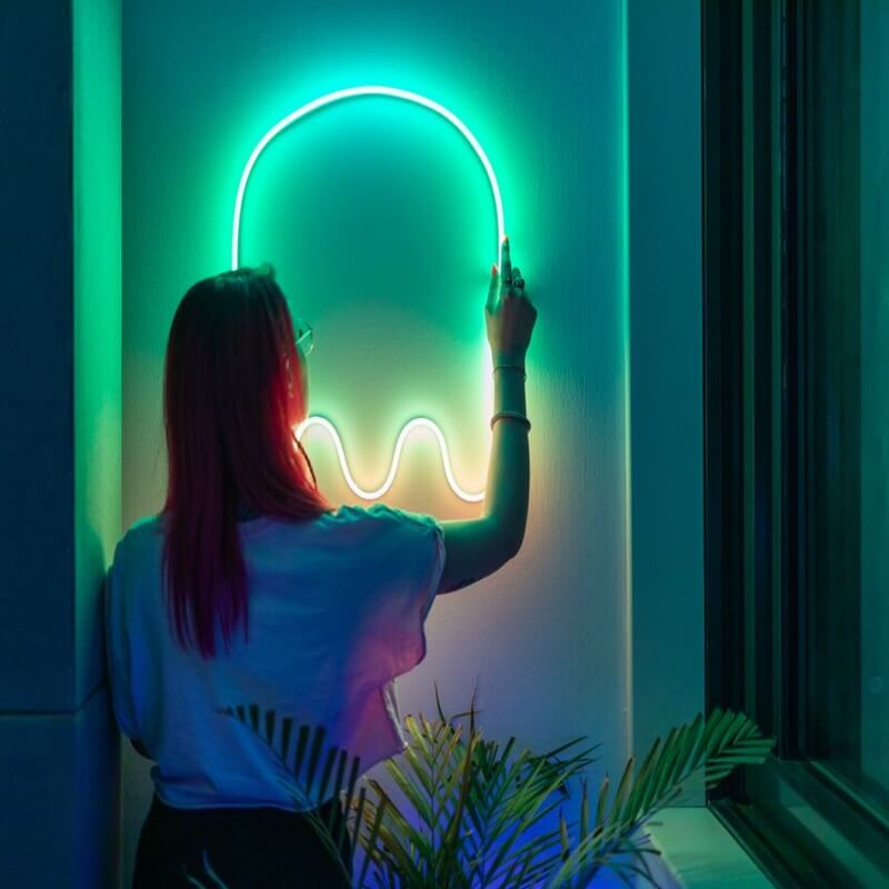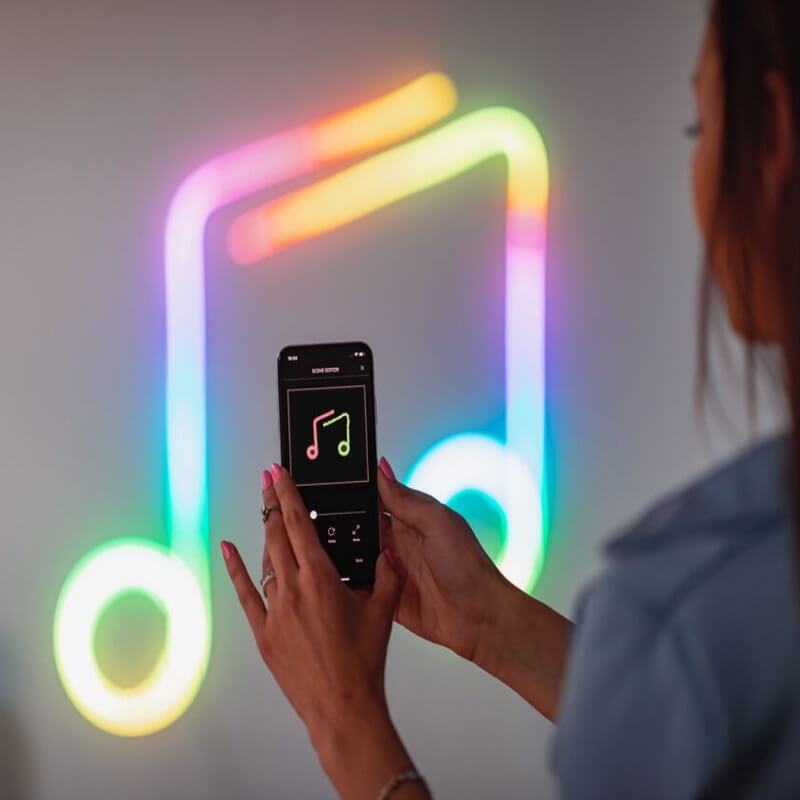 Listwa Twinkly Flex to inteligentna, przypominająca neon, elastyczna taśma LED, którą można sterować za pomocą aplikacji i asystentów głosowych. Dzięki długości 2 m Twinkly Flex może być kształtowany w dowolny sposób, zapewniając nowy poziom projektowania oświetlenia i kreatywności w łączeniu. Ukształtuj go jak nutę muzyczną lub swoją osobistą maskotkę. Albo nadaj Flexowi minimalistyczny kształt – po prostu użyj klipsów i uchwytów aby przymocować swój projekt na miejscu. Możesz umieścić go na ścianie, a nawet w ramce: to Ty jesteś artystą.