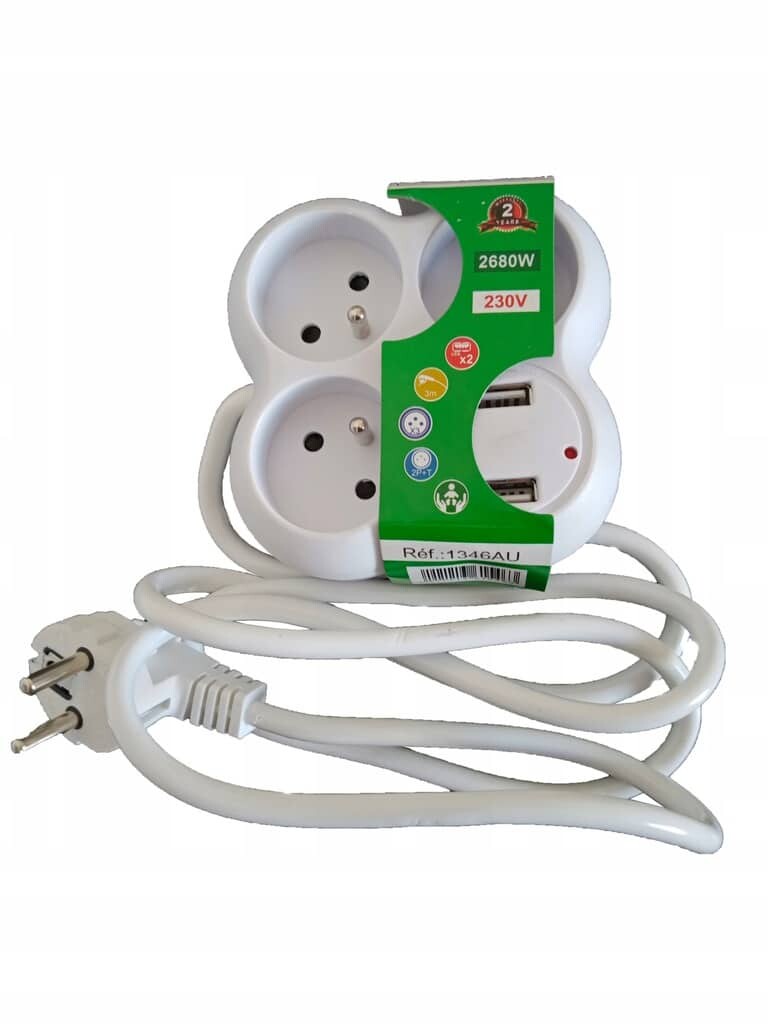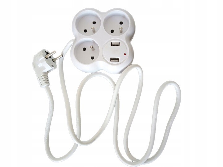 Listwa zasilająca 3 Gniazda + 2x USB Przedłużacz