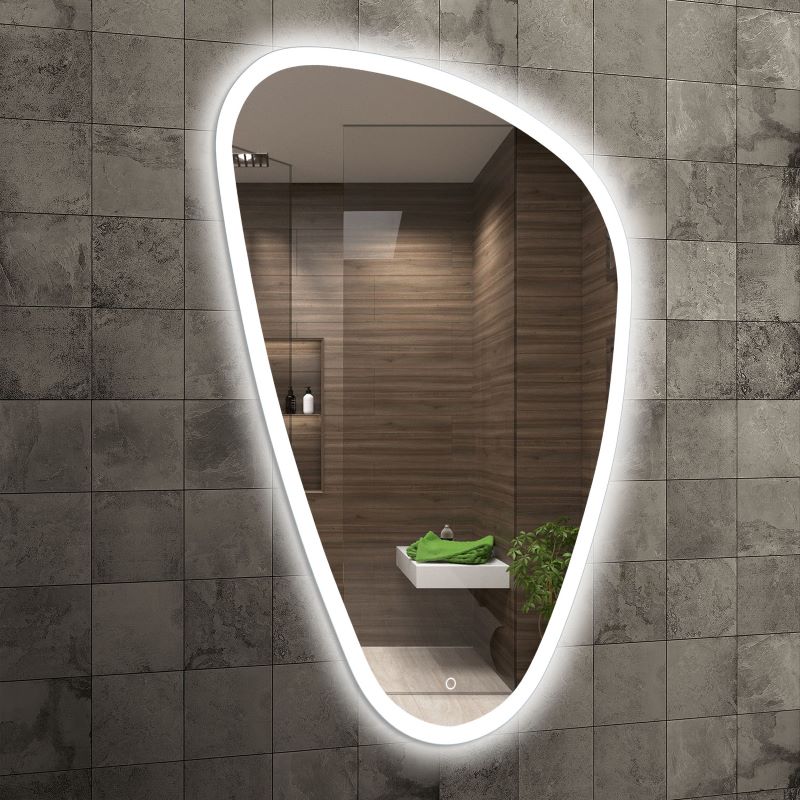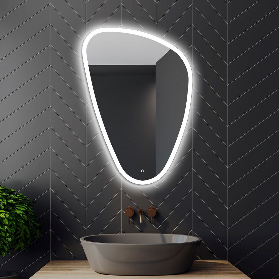 Lustro uniwersalne Impala nieregularne podświetlane LED bez ramy z włącznikiem dotykowym LED w rozmiarze 69 x 96 cm